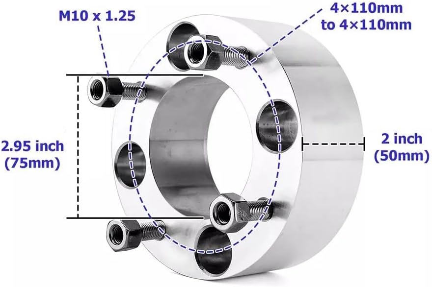 1 Piece 2" 4X110 ATV Wheel Spacers 50mm M10X1.25 Nuts for Ho R Suz Kaw YA For ATV Brand/Model : SuzSpecial Features : wheel spacerItem Weight : 1kgModel Name : H03060-1pcOrigin : Mainland ChinaMaterial : aluminum