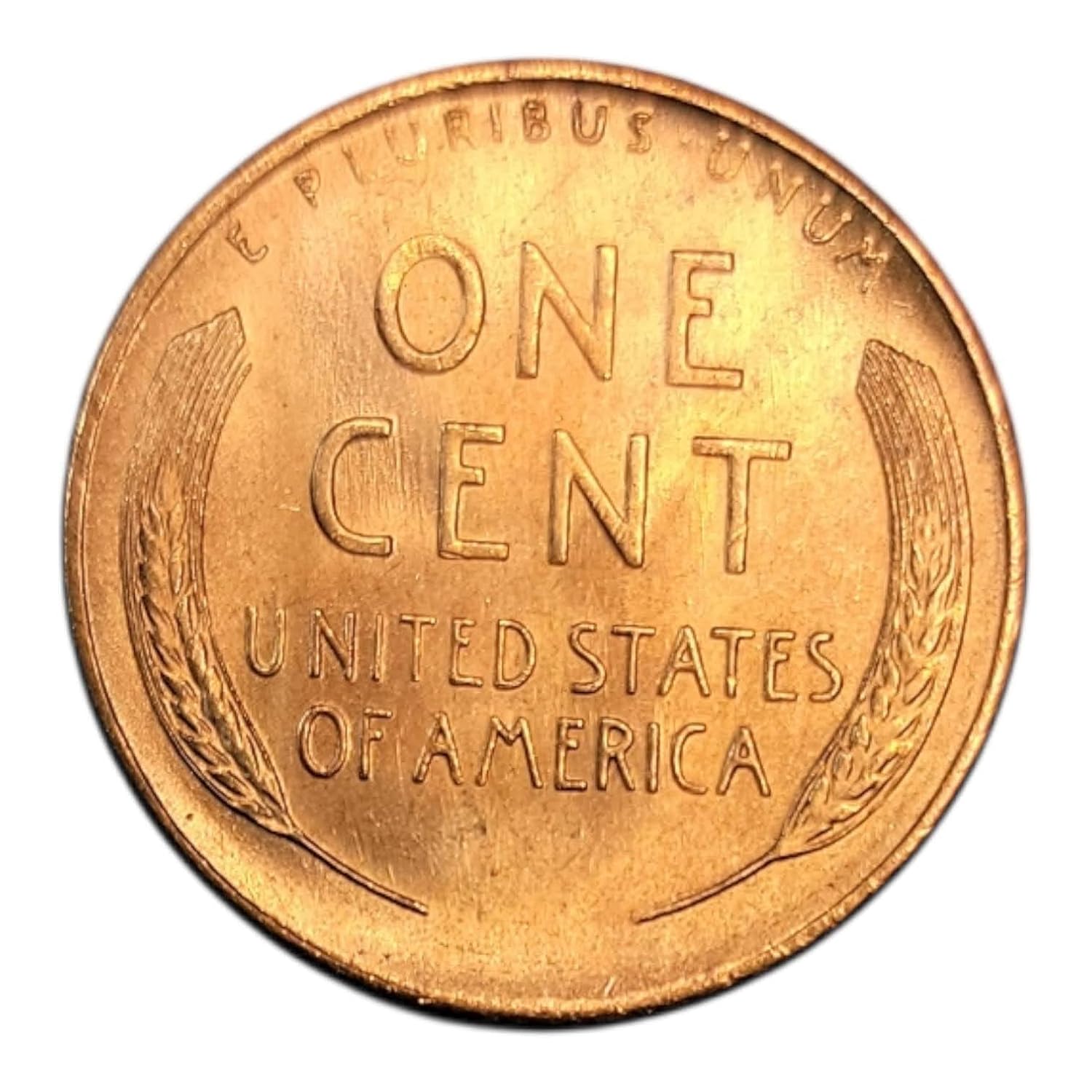 A genuine 1956 D 1c Lincoln Wheat Cent Penny in BU Brilliant Uncirculated Mint State Condition. Lincoln cents with the original Wheat Ears reverse were introduced in 1909 on the 100th anniversary of Abraham Lincoln's birth and were struck until 1958. These bronze pennies were the first circulating U.S. coins to depict an actual person.