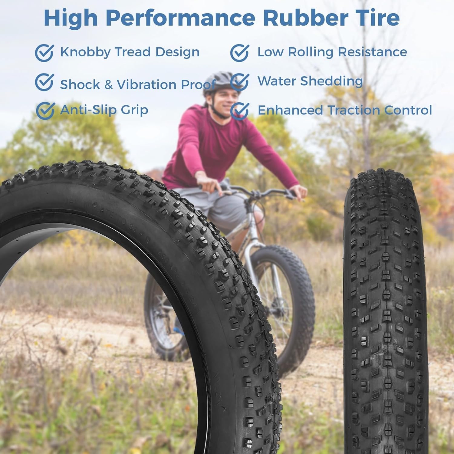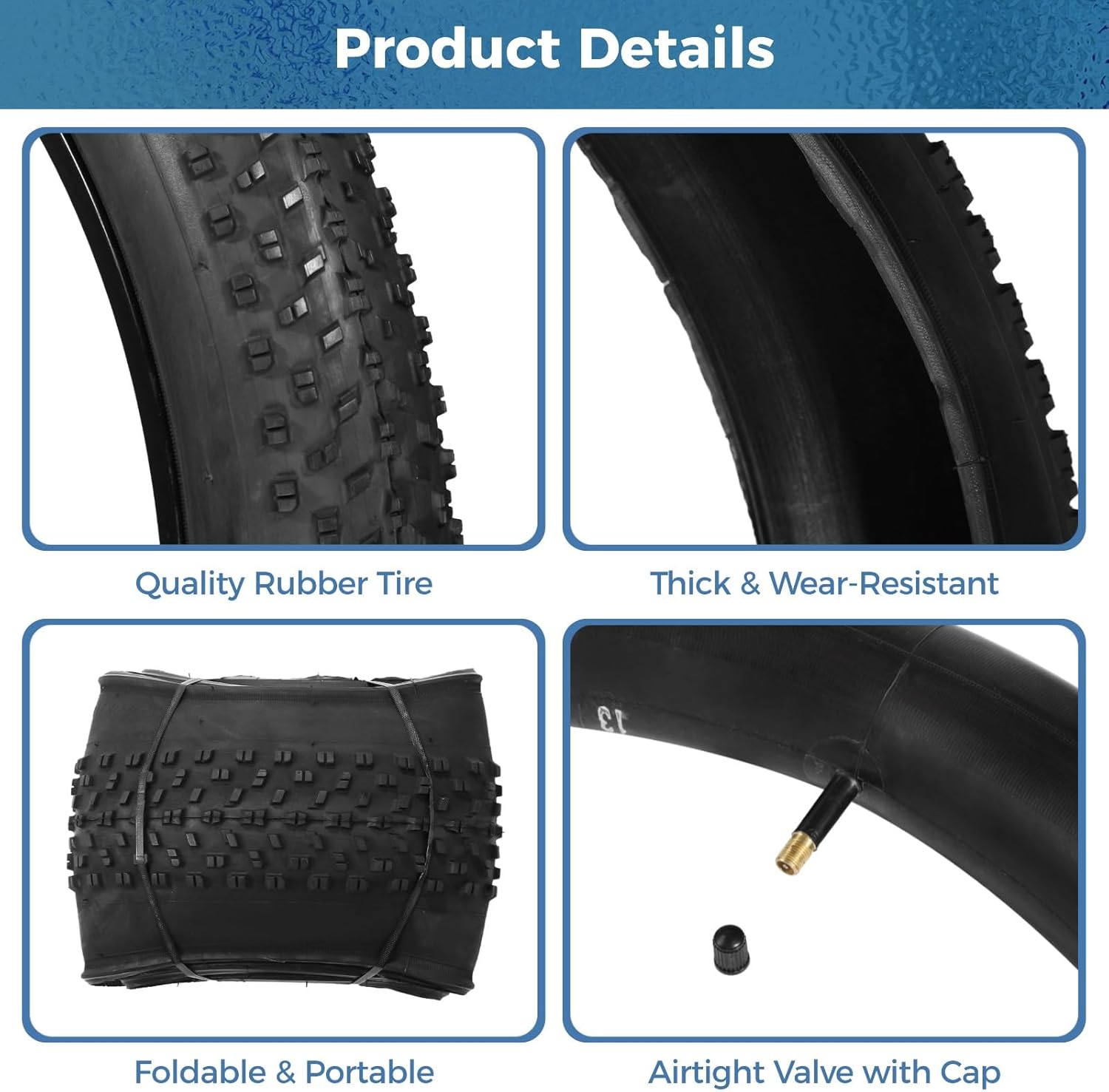 Color: BlackMaterial: RubberSize: 20 x 3.0 in Tire SizePackage Includes: 1Pack/2Pack 2 Fat Bike Tires, 1Pack/2Pack Inner Tubes, 1Pack/2Pack Tire LeversThis replacement set is designed for riders who need dependable performance from a 20x3.0 bike tire, offering stable support for both daily commutes and e-bike adventures. The wide profile provides added cushioning and balance, making it suitable for a variety of riding conditions.Thick Rubber Construction: Each tire is built with durable rubber that stands up well to frequent use on paved paths, gravel, and mixed surfaces, making it a reliable option for those searching for 20 x 3 bike tires.Enhanced Comfort & Traction: The tread pattern supports smooth rolling while maintaining grip on uneven terrain; ideal for riders upgrading their 20 inch fat tire setup or refreshing worn 20x3 bicycle tires.Secure Tube Fit: The included inner tubes pair smoothly with the wide casing to maintain consistent air pressure; suitable for e-bikes that require a stable 20 x 3.0 ebike tire fit.Practical Tools Included: Tire levers come with the set to simplify installation and help with quick roadside maintenance when adjusting a 20x3 tire or replacing older components.Note:Measurements may vary slightly due to manual sizing.Colors may appear different based on monitor or lighting; please refer to the actual item.