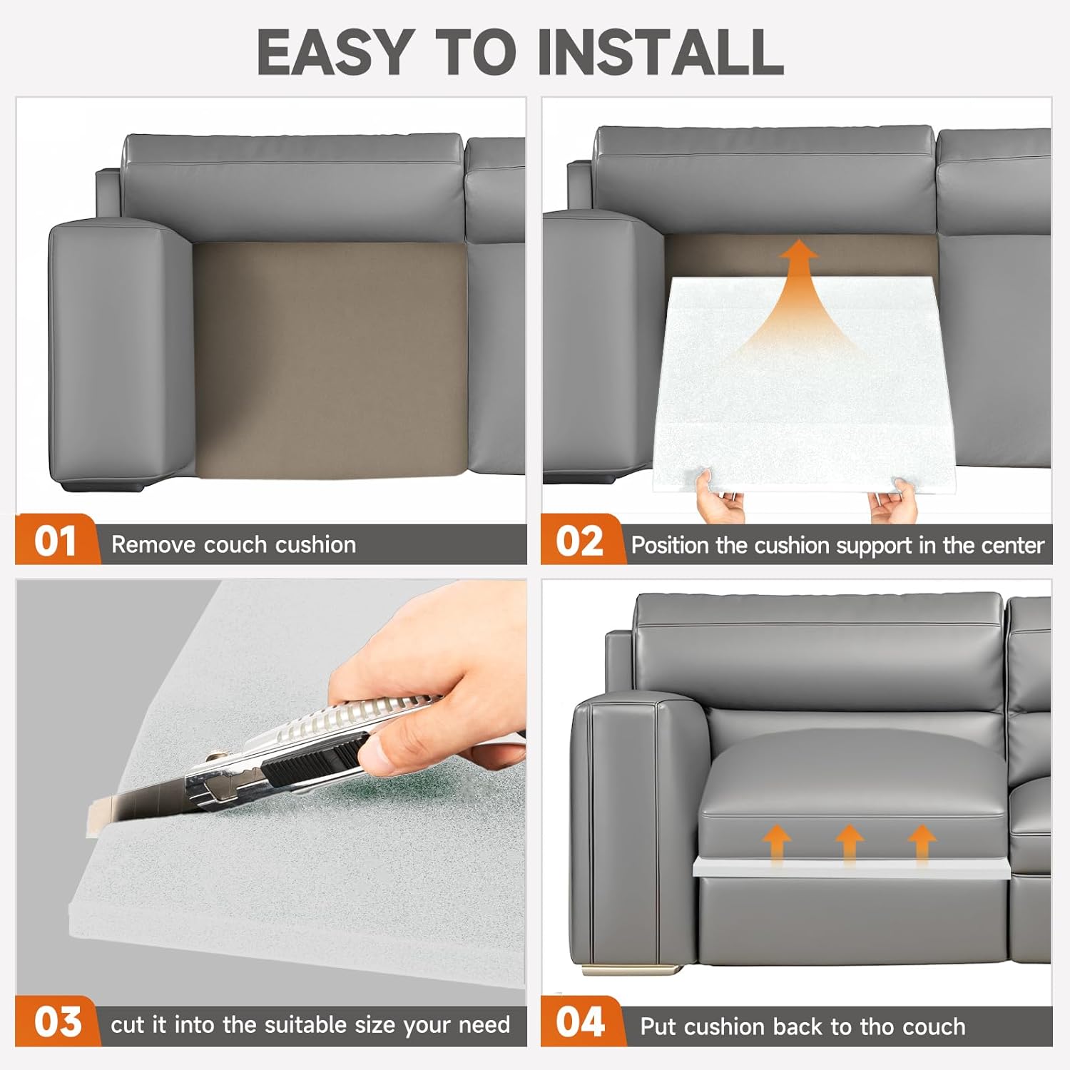 Revitalize your beloved furniture with our premium Couch Cushion Support designed to effectively address sagging cushions and restore optimal comfort to your seating. Crafted from firm, durable 41D high-density foam, our foam couch insert ensures superior support, lasting shape retention, and exceptional resilience.
