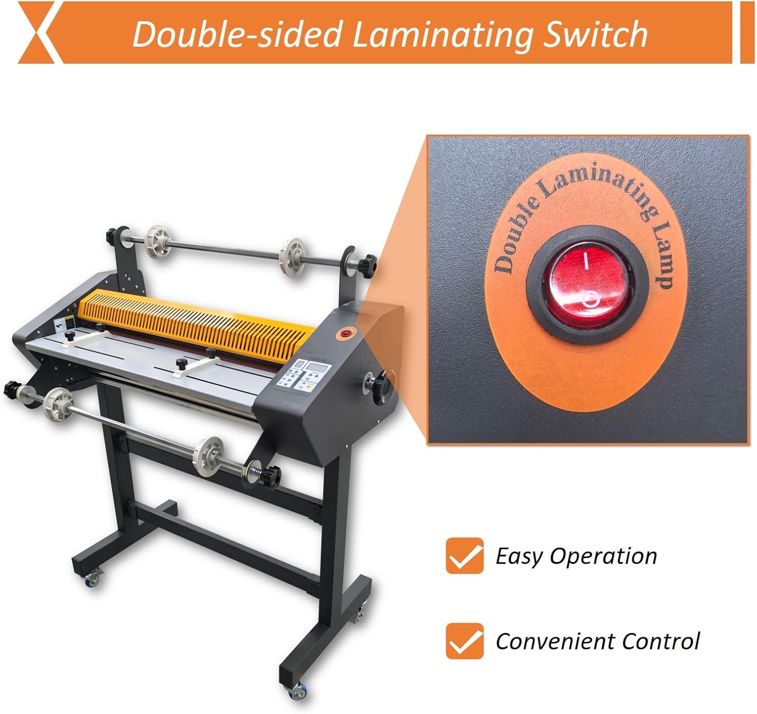 The FM-650 Electric Thermal Roll Laminator Machine is a professional-grade double-sided cold laminating machine engineered for high-efficiency lamination in diverse environments—from busy offices and classrooms to print shops and creative studios.With a maximum laminating width of 635mm (25 inches) and the ability to handle materials up to 0.2"/5mm thick, this laminator delivers consistent, bubble-free results on paper, photos, documents, posters, and more. It supports both 1'' and 3'' film cores and offers dual-mode operation—select between cold or thermal lamination based on your material needs.The machine features four precision rubber rollers (two heated, two discharge) that ensure even pressure and temperature distribution at speeds up to 3000mm/min. The digital control panel allows easy adjustment of speed and temperature settings up to 170°C/338℉ for tailored performance across different media types.Designed for safety and reliability, the FM-650 operates on standard AC110V/60Hz power with full grounding compatibility. A manual handwheel enables quick roller adjustment during operation, enhancing both control and convenience.Compact yet robust at 33.8 x 19.7 x 42.5 inches and 130 lbs, it balances industrial performance with user-friendly operation—ideal for professionals who demand quality, versatility, and efficiency in every laminated output.Package Contents: ENT-1201221 x Electric Thermal Roll Laminator Machine 110V 1600W