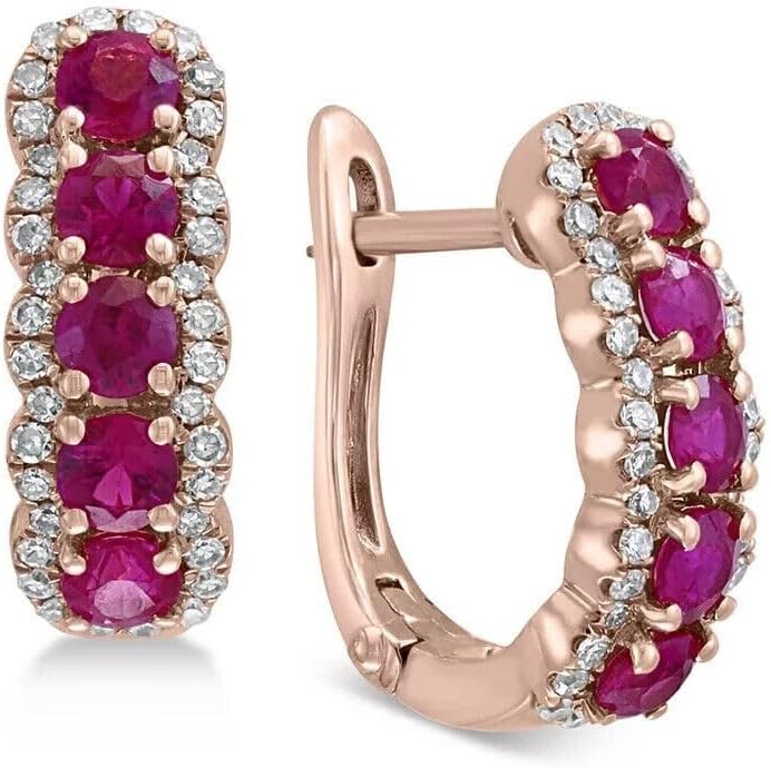Add a touch of romance and elegance to your jewelry collection with these 2.50 Carat Round Shape Pink Ruby & Diamond Hoop Earrings. The rich pink ruby stones beautifully contrast with sparkling diamonds, creating a refined and eye-catching design perfect for modern women. Expertly crafted in 925 sterling silver and finished with luxurious 14K rose gold plating, these hoop earrings deliver long-lasting shine and comfortable wear. The secure hoop closure provides a confident fit, making them suitable for both everyday elegance and special occasions. Perfect for weddings, engagement celebrations, anniversary dinners, or birthday parties, these pink ruby and diamond hoop earrings make a timeless gift and a stunning statement piece.