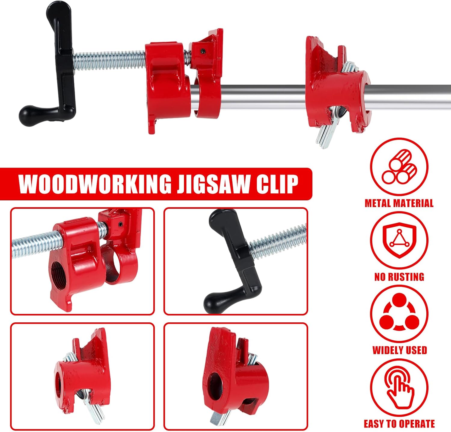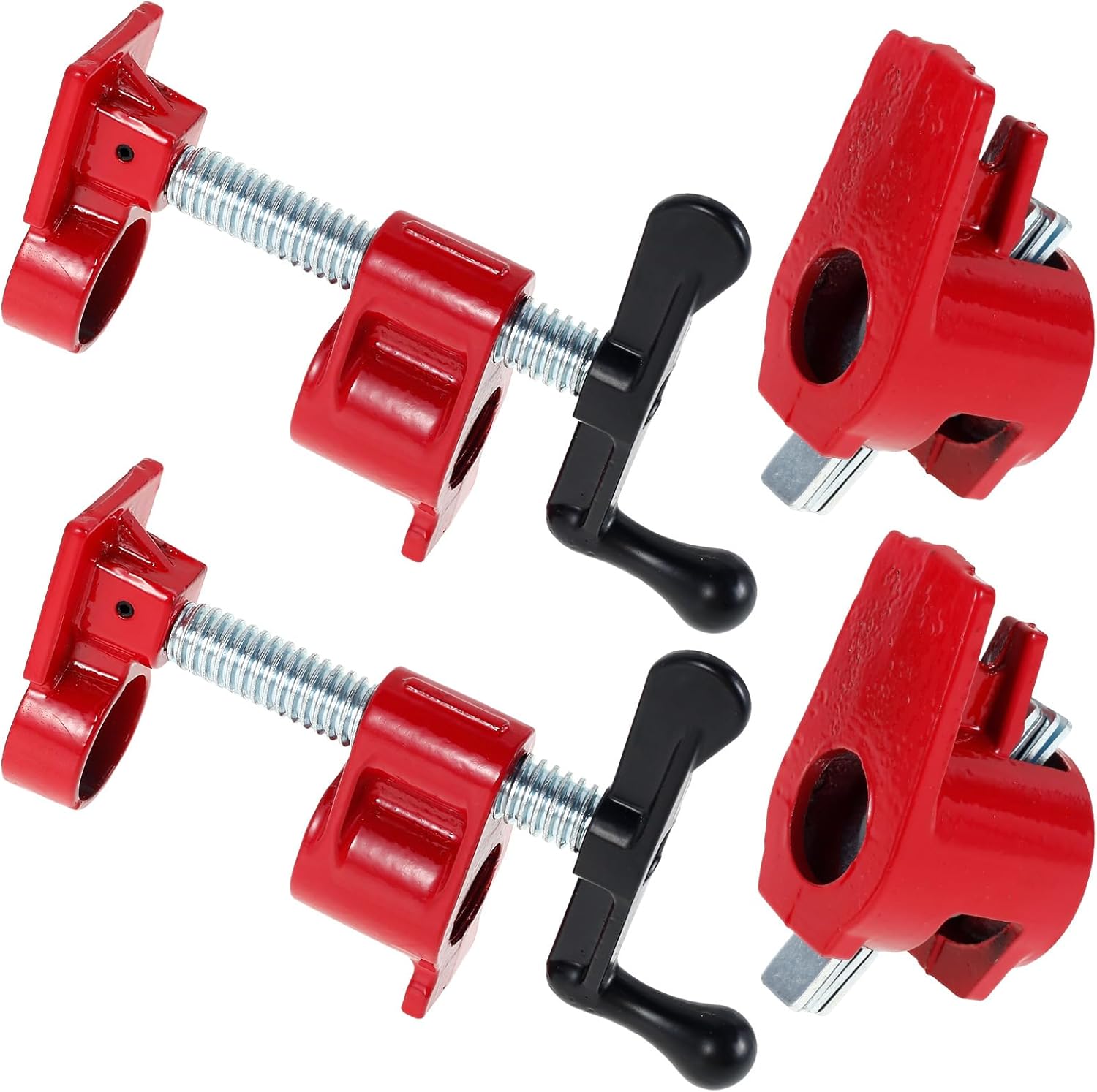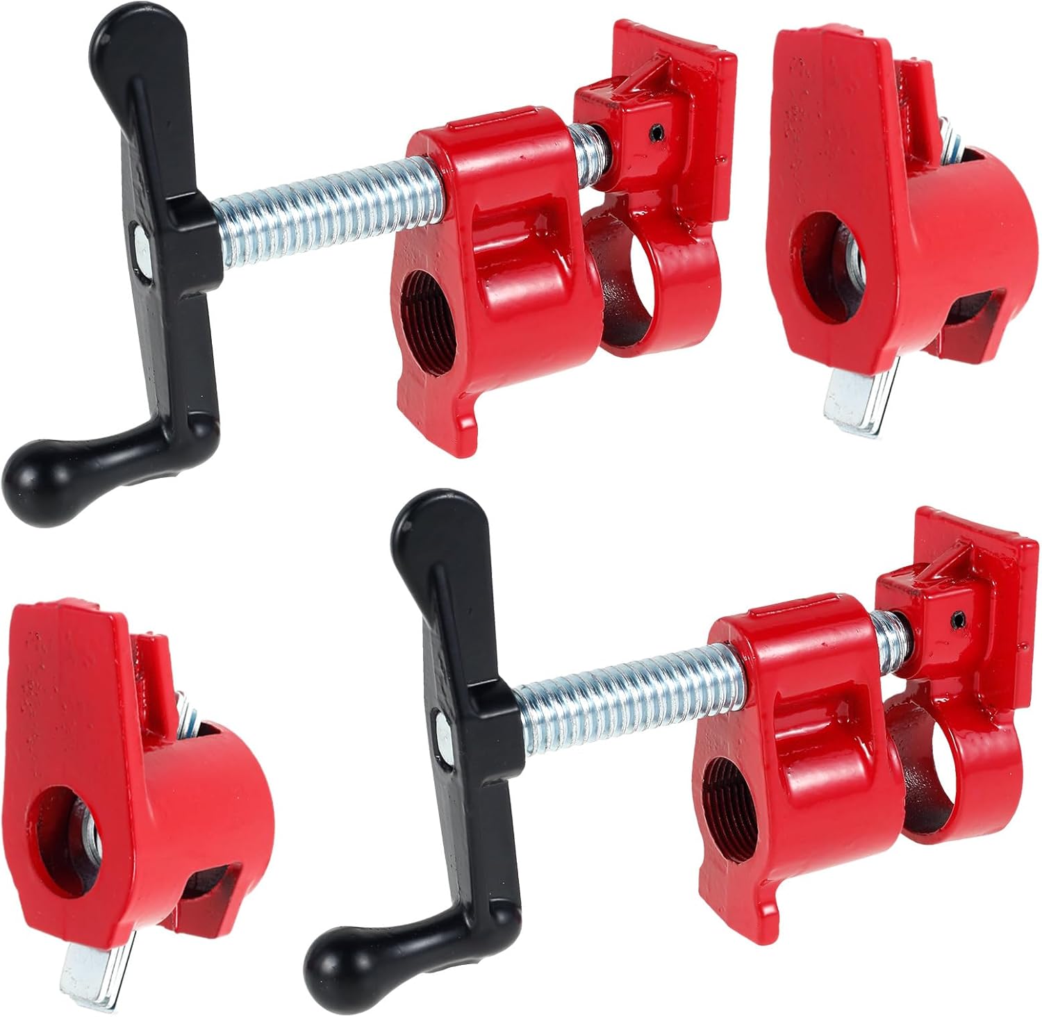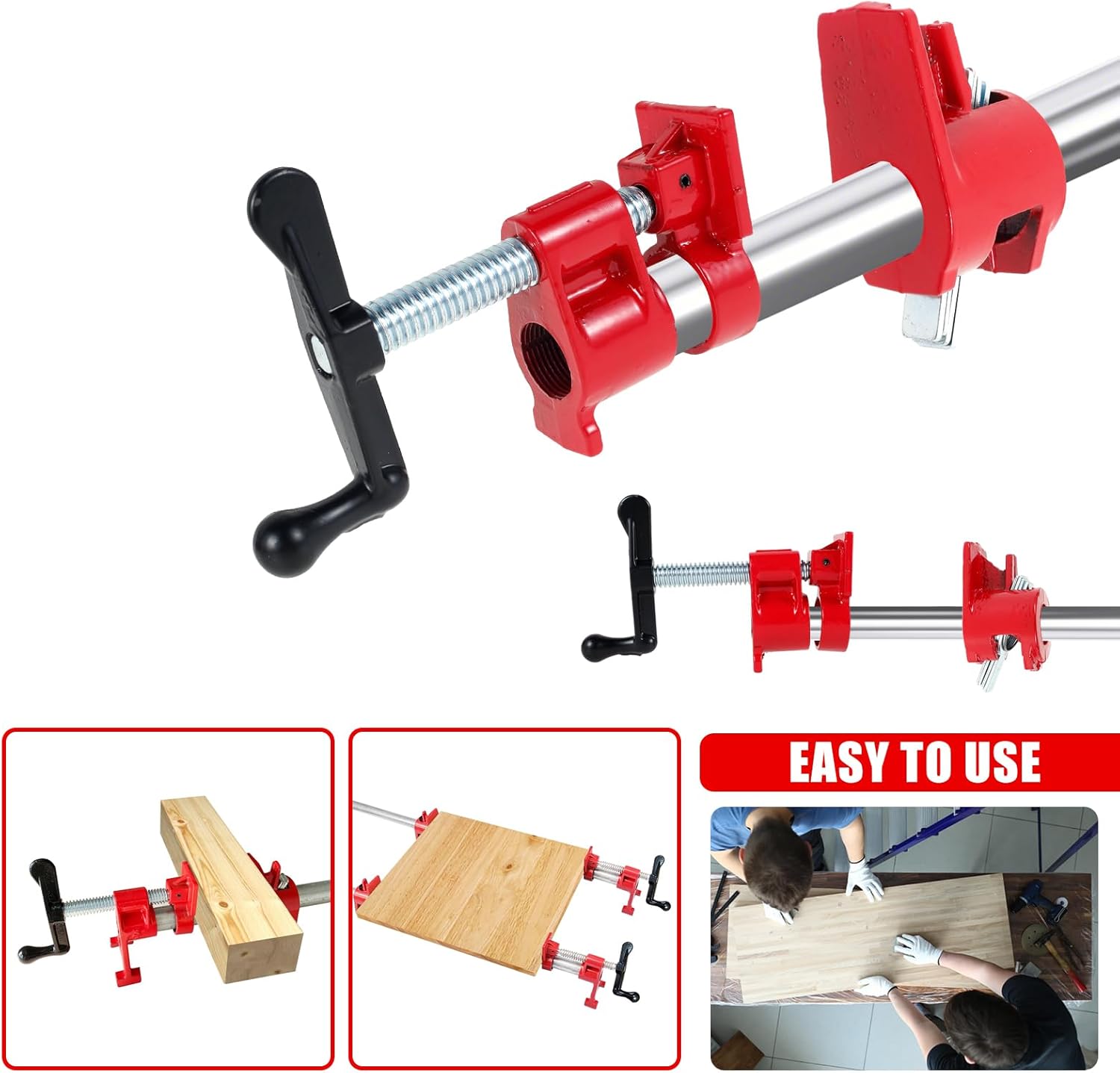 Parts List:2 x Wood Gluing Pipe Clamp SetProduct Specification:DescriptionThe wood gluing pipe clamp set is forged with malleable cast iron material, high hardness, not easy to rust. 3/4inch hand crank pipe clamps or 3/4inch vertical pipe clamps (optional) can meet most of your needs, easily adjustable clamping range.Key FeaturesUser Friendly: Suitable for clamping different types of wood, our Pipe Clamps hold wood in place for gluing and drilling by simply sliding the clamps into lengths of 3/4-inch pipe.Bracket Design: The bracket design ensures a stable base to work on, so you can tackle woodworking, home improvement and DIY projects with confidence.Specification:Product Name: 3/4 Inch Pipe ClampsMaterial: Malleable cast ironSpecification(optional): 3/4inch vertical type, 3/4inch hand-operated typeDocking hose: 20mm internal strength - 26mm external diameterSize:Vertical Pipe Clamp: 11x7.7cmHand crank pipe clamp: 6.8cmColor: RedNote:1. There may be slight differences between the picture and the actual color of the commodity. We will try our best to show you the exact color.2. Please allow slight dimension difference due to manual measurement.