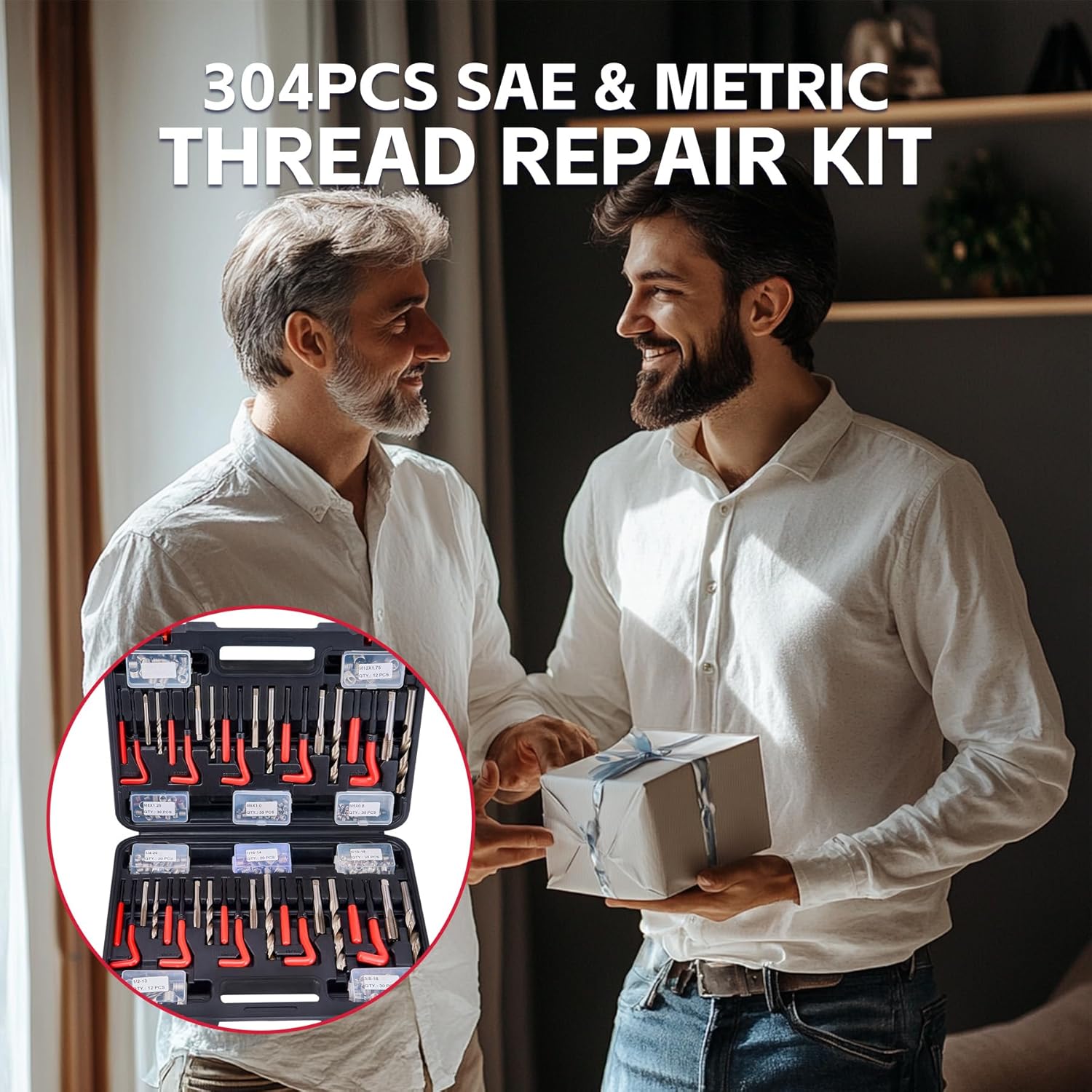 304pcs Thread Repair Kit, SAE and Metric Helicoil Repair Kit, HSS Drill, Threaded Inserts, Screw Tap, Installation and Tang Break Tool, 1/4" 5/16" 3/8" 7/16" 1/2" M5 M6 M8 M10 M12