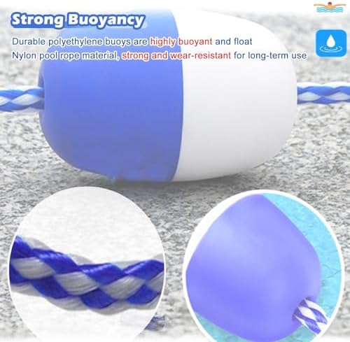Enhance your pool safety with our premium Pool Safety Divider Rope, designed for both residential and commercial use, including hotels, resorts, and community pools. This essential tool not only promotes safety but also optimizes your swimming experience. **Specifications:** - **Color:** Blue & White - **Float Material:** Durable Polyethylene - **Rope Material:** High-Quality Nylon - **Quantity:** 2 pcs/m - **Single Float Size (WxL):** 7x10cm (2.7x3.9in) **Product Features:** - **Safety First:** Clearly marks the waterline in lakes and pools to prevent accidents. - **Effective Division:** Easily separates shallow and deep ends in your pool, enhancing safety for swimmers of all ages. - **Secure Installation:** Designed to stay in place, the buoys can be effortlessly strung across your pool. - **Versatile Use:** Ideal for both above-ground and in-ground swimming pools, making it suitable for various settings. - **Competition Ready:** Perfect for indoor and outdoor pools, facilitating lap separation during practice or competitions. - **Easy Attachment:** Comes with hooks for quick and secure installation on both sides of the pool. **Package Includes:** - 1 × Pool Safety Divider Rope - 2 × Hooks **Warm Tips:** - Handcrafted products may have a slight size variation of 1-3 cm. - Actual product colors may vary due to display and lighting conditions. Invest in safety and enhance your swimming experience with our Pool Safety Divider Rope. Enjoy peace of mind knowing your pool is a safer place for everyone!