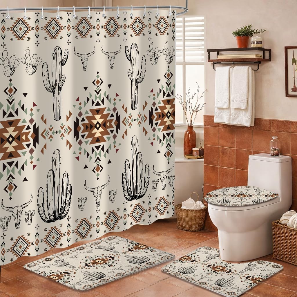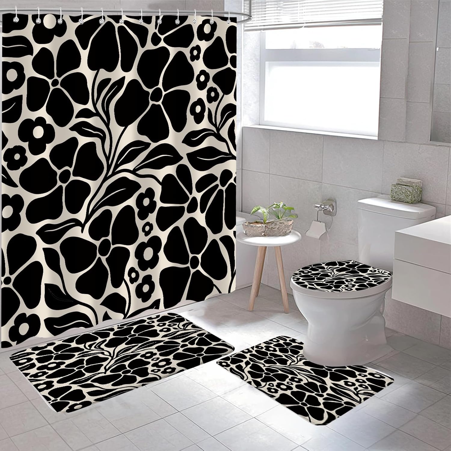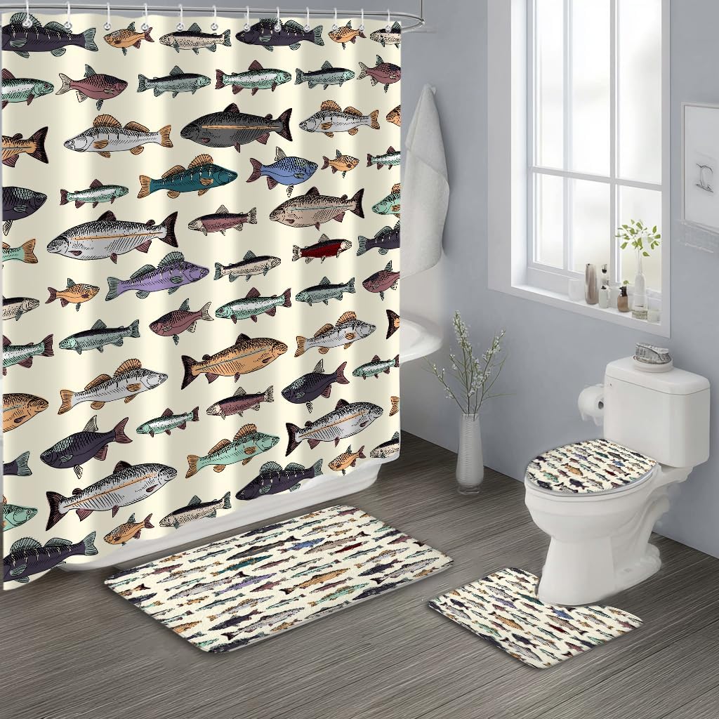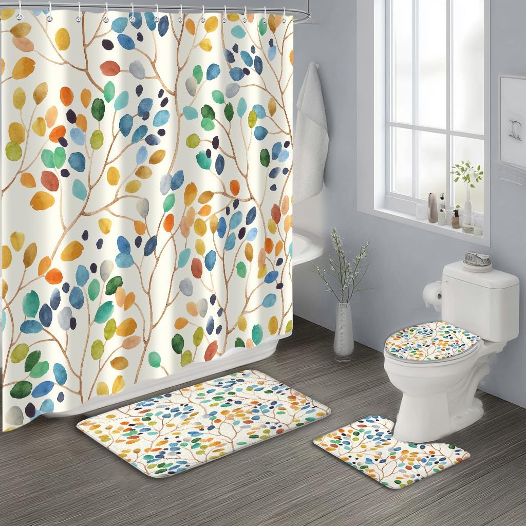Product Description 4Pc Set Shower Curtain Sets Non-Slip Rug+Waterproof Cloth U Shape Toilet Lid Cover, Bath Mat and Shower Curtain with 12 Hooks for Bathroom Decor Set,72" x 72"You need the bathroom curtain High-definition graphic design printed with advanced non-fading technology. This design will add life to the bathroom and make your bath time more enjoyable. It's also an ideal holiday, valentine's day, Christmas, birthday gift for family, friends, and coworkers, etc.