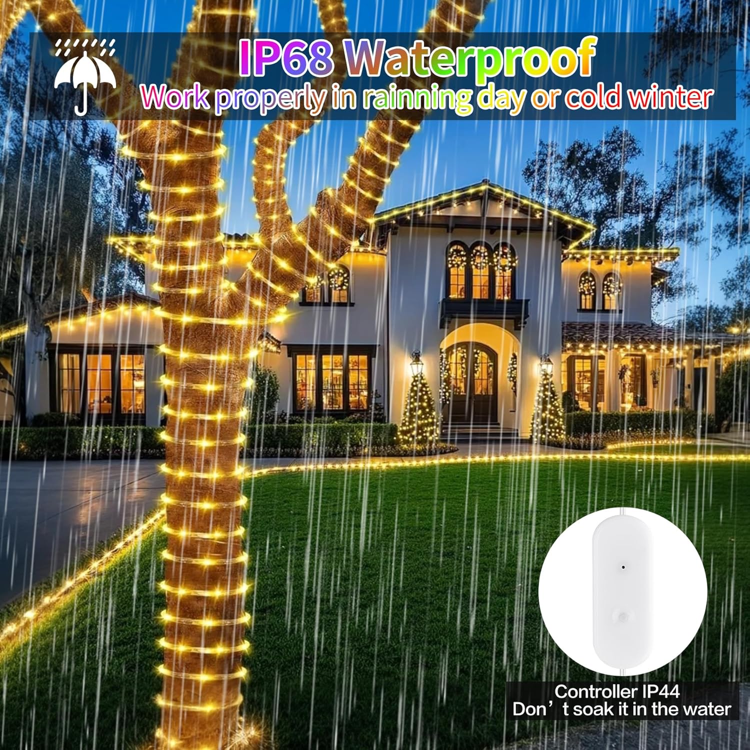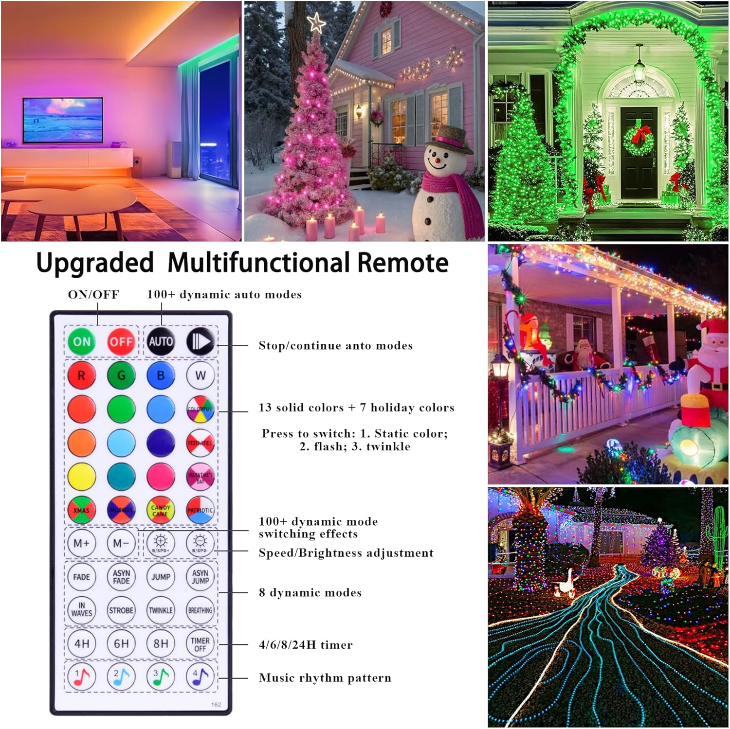 | Additional Features | 16 Million Colors, 100+ Modes, Color Changing, DIY Function, Timer Function, Music/Voice Sync, Remote & APP Smart Control, IP68 Waterproof, Dimmable, 99ft, 300 LEDs |