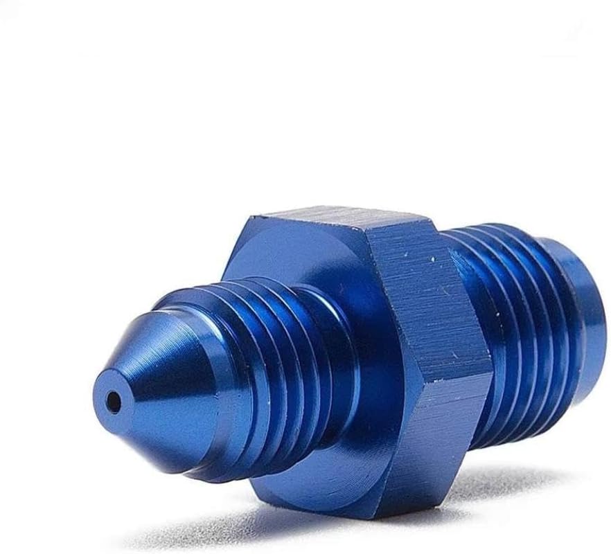 AN3 Turbo Oil Feed Restrictor Fitting – Compatible with T25/T28 GT25R GT28R GT30R GT35R. This fitting features an AN3 size (3/8"-24 UNF) with a 7/16-24 inverted flare connection. Constructed from aluminum and finished in blue, it includes a 0.9 mm (0.035 inch) restrictor orifice. Designed for use with ball bearing and non-ball bearing turbochargers. Fits T25, T28, GT25R, GT28R, GT28RS, GT30, and GT35R turbo models where an oil feed restrictor is required. Package includes one AN3 turbo oil feed restrictor fitting. Compatibility Note: This is a third-party replacement component. Brand and model references are included solely to indicate fitment.