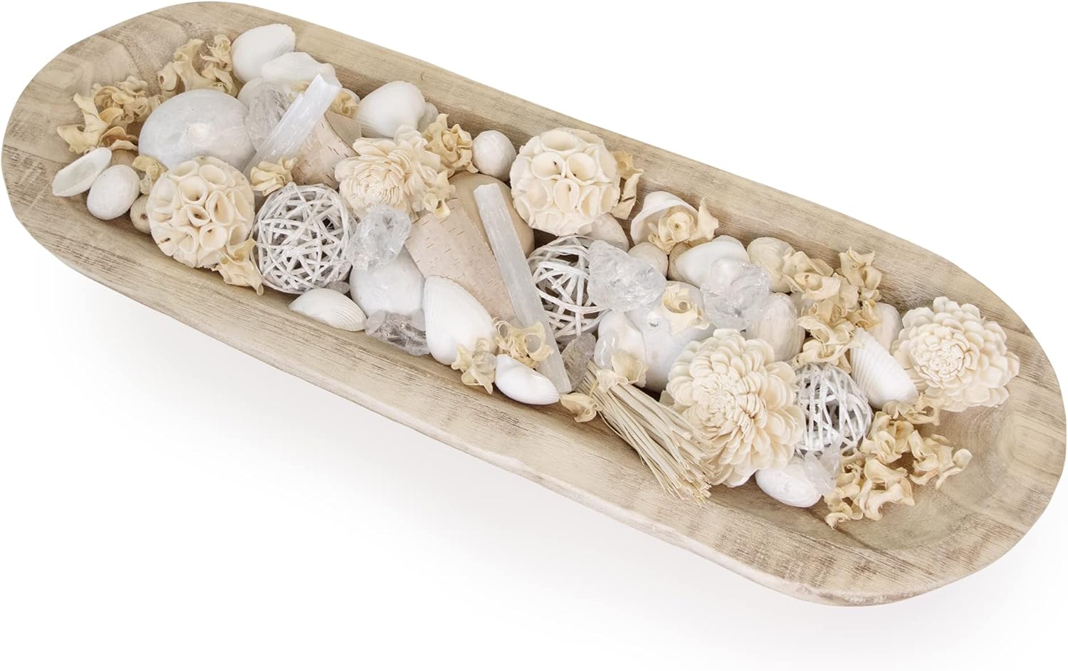 ANDALUCA's Long Paulownia Wood Bowl is the perfect decorative bowl for potpourri, decor or decorative balls. This Paulownia Wood Bowl is very versatile, perfect for potpourri and decorative bowl fillers as well can be used as a catch all bowl for any item in your kitchen or table. It's length and size make it great for putting fruits and items in your kitchen as well as a dining table centerpiece bowl or entryway bowl.