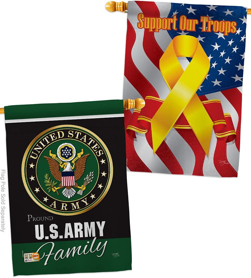 Military Beautiful Large House FlagBreeze Decor have variety of House Flag for all occasions. Uniquely design for hanging indoor or outdoor use. We are committed to offering you exceptional values. Our customers enjoy displaying our House Flag for longer periods. Specification: Theme: Military Size: House Flag 28" x 40" Print: Double-Sided Readable: Readable Both Sides Material: Weather Resistant 3 Layers Blockout Stitching: Double Stitched Display: Vertical Hang Type: Sleeve Artist: © Schal Lee Special Features: Origin: Made In USAPackage Include: 1 pc x House Flag 28" x 40" Package Decorative FlagsFor more than a decade, we’ve been dedicated to manufacturing flags with no comparison in quality and beautiful designs. Our flags are made with our Pro Guard material that is soft to the touch and designs can be read correctly on the flag. A feature that our customers will love. We are committed to using eco-friendly inks that won’t leave a foot print in our environment. MPN: BD-MI-H-108410-IP-BO-D-US20-UA 08410 58410