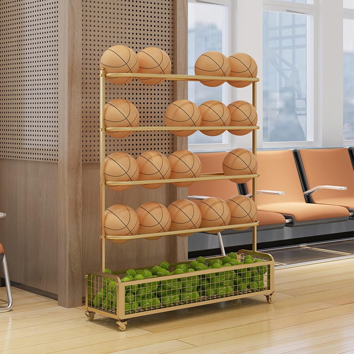Product Description: Whether you need a simple storage solution for your sporting goods, or additional shelf space in your home gym, garage, or anywhere in the house, our sport storage System is your best chose. We are committed to providing customers with quality products, if you encounter any problems with the product or the hardware after receiving your item, please let us know, we will resolve it immediately! Specifications: Material: Metal Steel Color: Black Gold White Size: 120×32×130cm/47.2×12.6×51.1in Features: The sports rack organizer is made of the strong iron wire with a durable rust-resistant finish. The large storage container has space for basketballs, footballs, soccer balls, volleyball, helmets and sports equipment. Organize all your sports equipments together, make your stadium and game room much better. Package Content: 1× Ball Storage Rack(Does not include other items shown in the picture) Precautions: Because it is processed by hand, the finished product usually has an error of 1-3 cm, please understand. There may be some differences between the image and the product due to display and lighting reasons, please refer to the actual product.