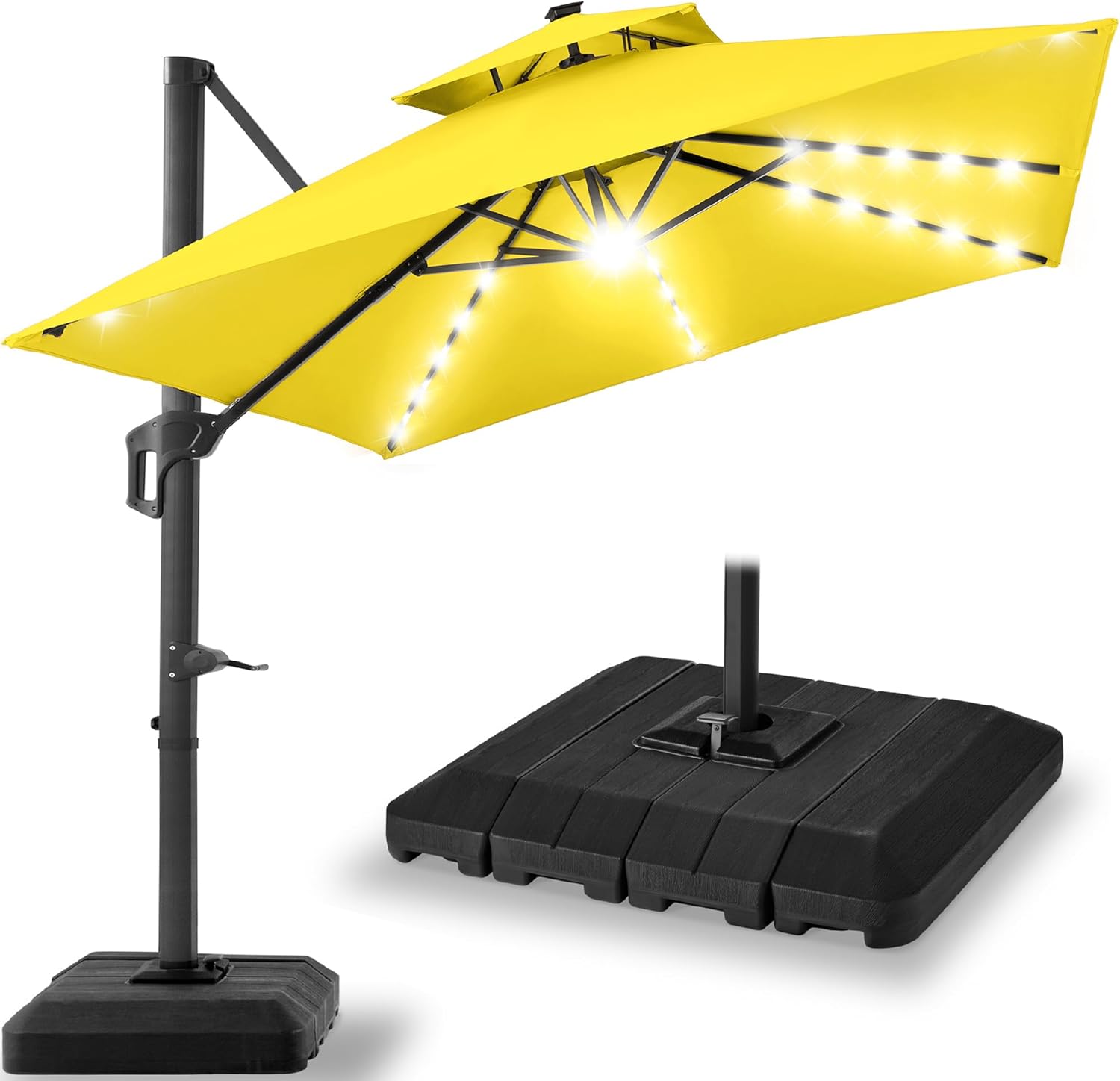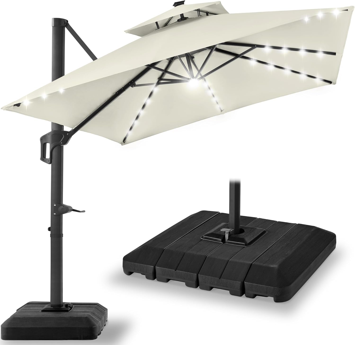 | Model Name | 2-Tier Square LED Cantilever Offset Umbrella w/ 360 Rotation, Base - 10x10ft |