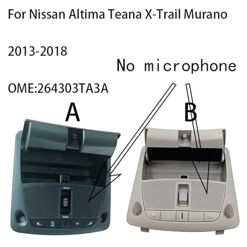 "(Specifications)Name: Car Dome Reading LightColour: As picture showMaterial: ABSPackage Contents:1 * Car Overhead Lamps(Features)(Swift &Responsive Illumination)Experience lightning-fast response times with our cutting-edge Car Dome Light Reading Lamp. Enjoy consistent and reliable lighting at your fingertips, providing swift and precise functionality whenever you need it.(Elegant Design for Modern Cars)Elevate your vehicle's ambiance with our stylish car room lamp reading light. Designed to complement modern cars, its elegant appearance not only adds sophistication but also provides essential lighting functionality. Meticulously crafted to seamlessly integrate into your vehicle's interior, it enhances your driving experience with elegance.(Enhanced Driving Comfort)Create a comfortable driving environment with our car dome light. Emitting soft, non-glare light, it enhances overall comfort during long journeys. This lamp provides gentle illumination that perfectly complements your driving style, making every trip more enjoyable.(Notice of purchase)1.Please double check the article code, the correspondence information is for reference only.2.If you are not sure about the item, ask us before purchase to avoid unnecessary returns.- (Fitment)for Nissan Altima Teana X-Trail Murano 2013-2018 264303TA3A.