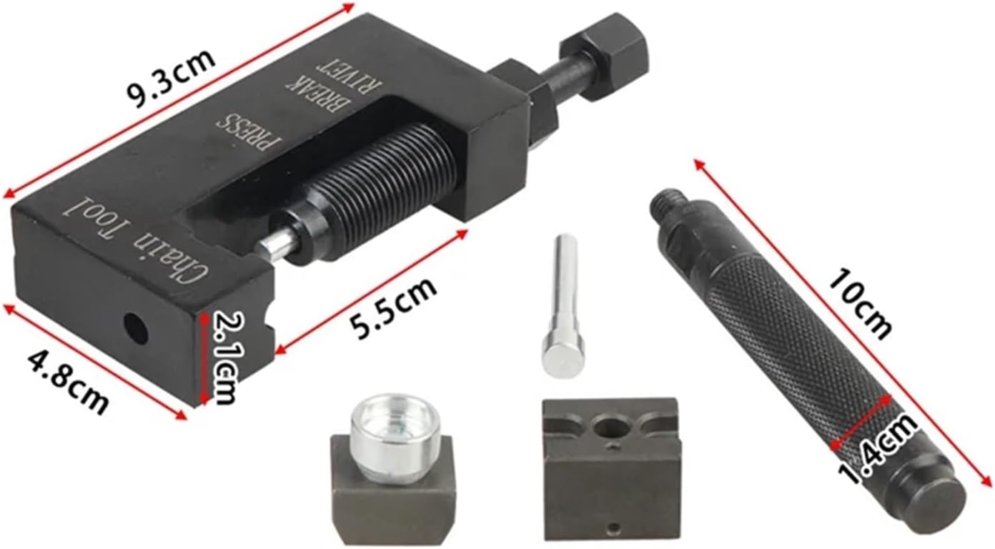 High quality cables, tools and controls for motorcycles, ATVs, snowmobiles and personal watercraft.Versatile design will remove chain pins, press master-link plates and rivet hollow nose and soft nose (quad stake) master link pins on O-ring and non-O-ring type chains. Innovative design will press, break and rivet 520, 525 and 530 chains with one convenient tool. Easy-to-use design allows you to change tool functions by simply moving the position of the anvil block.Indexing letters on movable anvil and body insures correct tool configuration; simply line up the letter on the anvil to the letter on the body to get the configuration you need. All components conveniently store on tool when not in use. All steel construction with heat treated components for strength and durability.May be supported in a vise or held with included handleGreat for the professional technician or DIY mechanicCompact and light enough to carry in a tool bag for trail side repairsColour:BlackMaterial:MetalPackage Contents:1Set x Chain BreakerOnly the above package content, other products are not included.Note: Light reflection and different displays may cause the color of the item in the picture a little different from the real thing. The measurement allowed error is +/- 1-3cm.