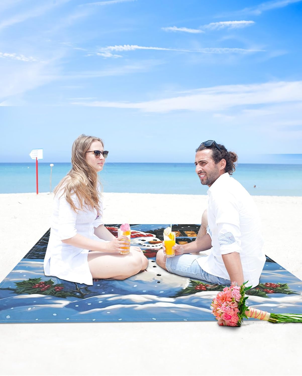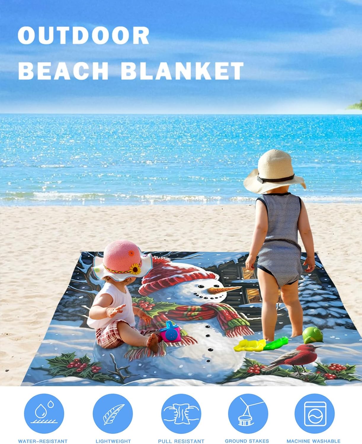 Extra Large Outdoor Waterproof Sandproof Picnic Beach Blanket will meet you and your family's any needs. Your friends even passer-by will be amazingly surprised at how beautiful and delicate these travel blankets are!Summer Beach Blanket FeaturePremium Camping Mat -- This soft yoga blanket are made of ripstop polyester ensures durability and breathability.Sandproof Fabric -- You just need to shake the beach mat to remove sand or other debris. Not needing the slightest effort.Waterproof Mat -- The kids toy mat can keep the top surface dry when used on wet grass or beach. And the oversized beach blanket also dries quickly so you don't have to wait for it to dry.Double Secure -- The beach blanket comes with 4 sand pockets on corner and 4 ground stakes, providing double wind protection to keep this beach essential blanket on the ground even in strong winds.Portable Outdoor Rug -- The no sand beach pad can be folded easily and carry it anywhere.Trip Blanket -- Whether you're at the beach, in the park, garden or backyard.It's a truly multifunctional camping accessory!Multiple Use -- The camping pad is perfect for using in the park, at sporting events and open-air festivals, camping, hiking, fishing.Additional Usage -- The picnic mat's shading effect is excellent, when the sun is too strong, you can also hang it up with a rope to get some shade.Gift Choice -- Due to its multi-functional characteristics, the spring outing mat is a perfect gift for family and friends on Halloween, Thanksgiving Day, Christmas.Kind ReminderEasy Clean -- The beach blanket is machine washable. Remember to select the gentle mode.Guarantee -- We are always committed to great quality products, if you have issues with the quality of the product, please reach out to us, we will give you 100% satisfaction service.