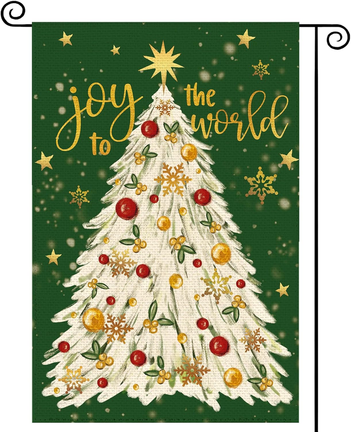 Tikeciti Christmas Tree Blue Welcome House Flag 28x40 Inch Double Sided, Joy to the World Burlap Large Yard Flag Winter Snowflake Xmas Holiday Flags Farmhouse Seasonal Outdoor Outside Decoration