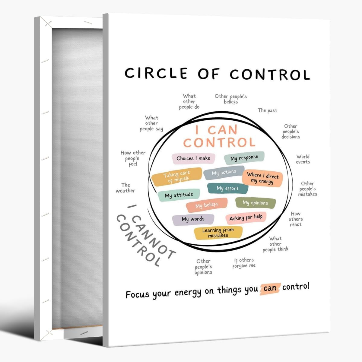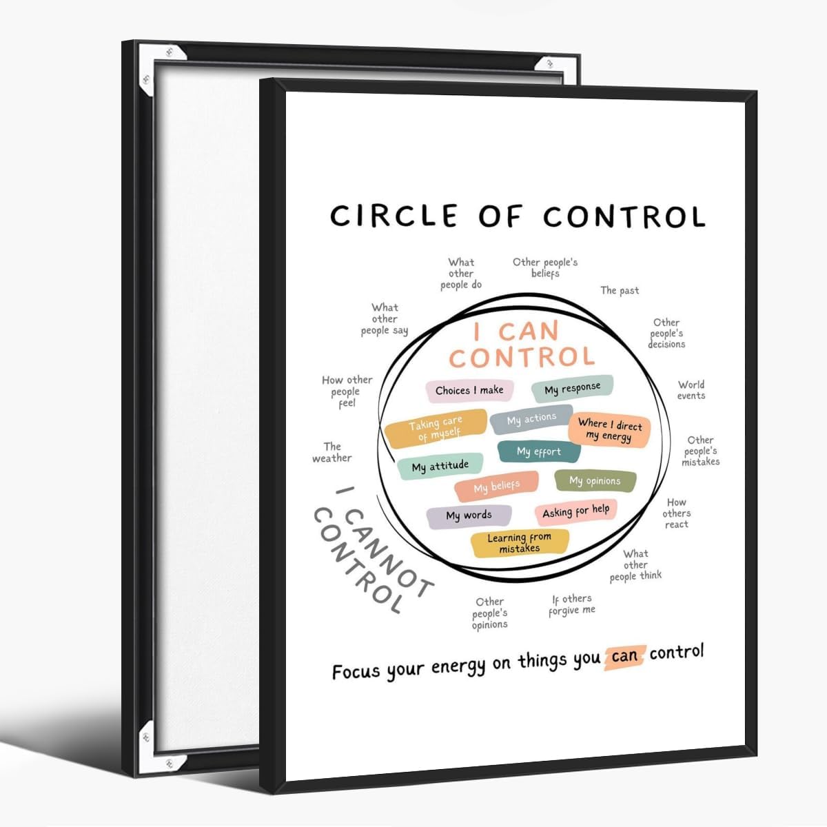 Modern Feminist Wall Art for Women's Empowerment ① Help yourself or your students shift their mindset and regain a sense of calm with this empowering Circle of Control wall art print. Designed to clearly illustrate what we can and cannot control in life, this chart is a perfect daily visual reminder for managing stress, emotions, and reactions. ② Whether you're a teacher looking to enhance your SEL corner, a therapist wanting to support clients, or a parent building emotional literacy at home, this colorful poster breaks down complex emotional concepts into something simple, memorable, and empowering. ③ Start fostering healthy coping skills and positive thought patterns—because focusing on what you can control changes everything.Size Optional: ♥ 8x12inches ♥ 12x18inches ♥ 16x24inches ♥ 20x30inches ♥ 24x36inches Frame Optional: ♥ Wooden PVC frame ♥ Golden PVC frame ♥ Black PVC frame ♥ Built-in Wooden frame ♥ Black aluminum frame For unframed poster one ,we will leave 1cm blank for your easily cutting