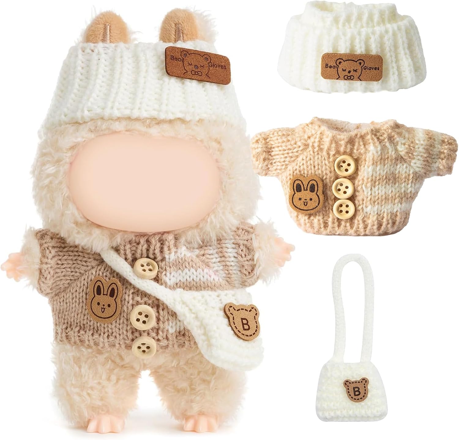 Transform your 17cm doll's wardrobe with this exquisitely handcrafted crochet clothing set. This premium 3-piece outfit includes a charming heart-themed sweater and a coordinating hat, perfect for creating unique and adorable styles. Each piece showcases meticulous attention to detail, from the delicate stitching to the carefully chosen color combinations. The outfit is designed to fit 17cm dolls perfectly, allowing for easy dressing and endless dress-up possibilities. The set features soft, durable materials that maintain their shape and appearance through playtime. Please note that this listing is for the clothing set only - doll is not included. These versatile pieces can be mixed and matched to create different looks, making them an excellent addition to any doll clothing collection. The detailed craftsmanship and cute design elements make this set a delightful choice for doll enthusiasts who appreciate quality and style in their miniature fashion pieces.