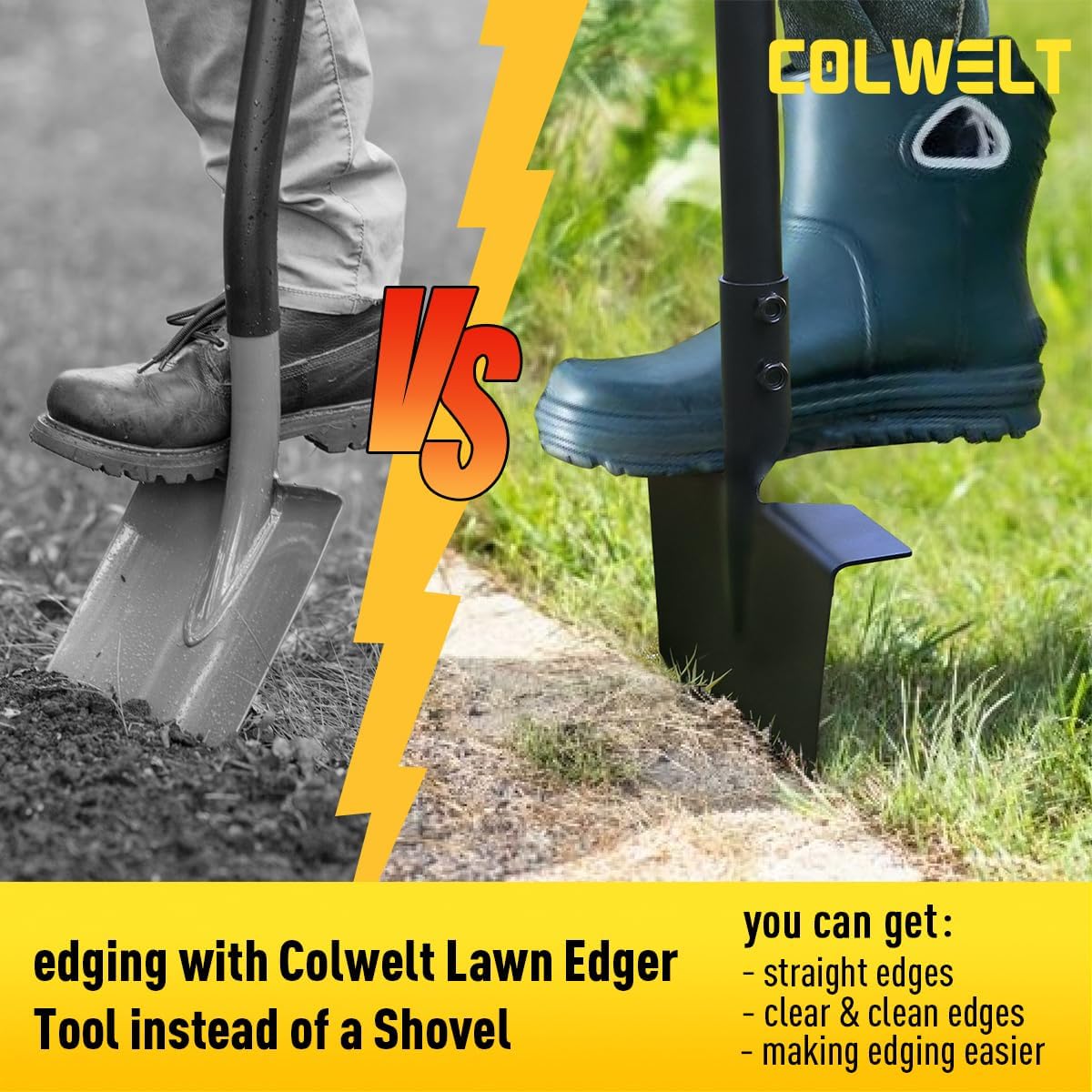 ABOUT USWe are a factory specializing in the production of various hardware garden tools. We have a professional design team and professional production workersSPECIFICATION ABOUT COLWELT EDGER LAWN TOOL:Blades Material: tempered carbon-steel blade with rust-resistant coating Handle Material: sturdy steel Total Length: 52.4inchesWeight: 3.22 lbsWide Foot Plate: 1.4’’(width) No Cords Needed, No Noise, Fumes, PollutionAssembly is quick and easy with instruction and all necessary fixings and toolsWHY WE DESIGN THIS 52.4’’ EXTRA-TALL GARDEN EDGER CHOPPER?Colwelt team noticed that standard-height of edgers for landscaping on the market are only about 40inches in total lengthwhile tall gardeners over 5'9" often start aching knees and a sore back after using those standard-height grass edger tool, because they constantly have to bend over while edgingAt Colwelt, we recognize and value what taller gardeners experience - that's why we're designing this XL Manual EdgerWHY CHOOSE COLWELT GRASS EDGER TOOL MANUAL?No Cords Needed, No Noise, Fumes, Pollution, Such An Eco-Friendly, Efficient Bed Edger For Landscapingnot like electrical or gas-powered ones, Colwelt sidewalk edger requires no cords, you can simply use it anytime anywheremeanwhile you won’t be bothered by the noise, fumes and refueling hasslesown it now, enjoying lawn edging in the early mornings with crisp, cool air without waking the neighbors52.4’’ XL Garden Edger, Specially Made For Tall Gardeners Over 5'9" Tallwith a total length of 52.4’’, Colwelt X-Large edging shovel are specially made for tall gardeners over 5'9" tallthe extended straight shaft provides extra leverage, helping you maintain a comfortable yard edging position for easier digging and edging. No more bending or crouching!the soft, non-slip grip on the handle makes it comfortable to useA Must Addition To Lawn Care Tools In Your Garage, Get It To Elevate Your Edging GameColwelt lawn edger works great for edge-line creation and renovation of neglected edges, helping you get smooth, clean edges in your garden, lawn, driveway, sidewalk or flower bedsAggressive V-Shape Bladethe V-shape blade is so aggressive to easily cut through even compacted soil, which is more effective than the rounded onesthe rust-resistant coating design ensures easy cleaning and long-lasting durabilityWide Footplate For Better Balance Colwelt manual edger features wide footplates, making it easier for you to leverage the force from your whole body instead of just upper body, providing you unparalleled comfort, control, and consistencyAll Solid Steel Constructioncrafted from thickened, heavy-duty steel and coated with a professional anti-rust finish, Colwelt grass edger tool offers outstanding corrosion resistance, durability, and weatherproof performanceEdging With Colwelt Professional Lawn Edger Tool Instead of A Shovelmaintain a beautiful lawn requires time, dedication, and the right garden toolsstop using a shovel for your edging, try this Colwelt professional garden edger chopper, which requires 30% less effort with 20% clearer & cleaner cutswhat’s more, Colwelt professional edger lawn tool produces both straight and curved edges with precision, while conventional shovels struggle to create clean straight linesA Perfect Companion: Colwelt 52.4'' Extra-Tall Edger Lawn Tool + Colwelt 59’’ Wheel Rotary Edger Lawn ToolColwelt 52.4'' Extra-Tall grass edger tool does a beautiful job rejuvenating and extending landscape beds, and renewing neglected edges along pavement. It worked best for edge-line creation and renovation of neglected edges. It’s not well adapted for routine edge maintenance, where a fast blade is required to achieve clean-cut grass roots, stems, and blades. For that reason, it makes a perfect companion with Colwelt 59’’ Wheel Rotary Edger Lawn Tool, which is built for maintenanceShop Now and Discover more half moon edger at Colwelt. Find your perfect fitOrder with ConfidenceColwelt offers a variety of manual edger lawn tools, so you’re sure to find the perfect one tailored to your needsthank you for choosing our Colwelt lawn edging tool. Customer satisfaction and service quality are the basic criteria for Colwelt. If you have any problem, please don't hesitate to reach out to us. We're here to assist you anytimeWARM TIPS:Use the edger when the ground is fairly moist, but not wet. It will be easier to cut through than dry earth.Be sure to clear the area of any debris such as large roots, rock or other obstacles. Not only will this make trimming the edges easier, it will also make it safer.Make sure you aren’t going to be digging where there are power or water lines or where there needs to be manhole access to sewer pipes.Also avoid using the lawn edger around children, pets, or others standing nearby.