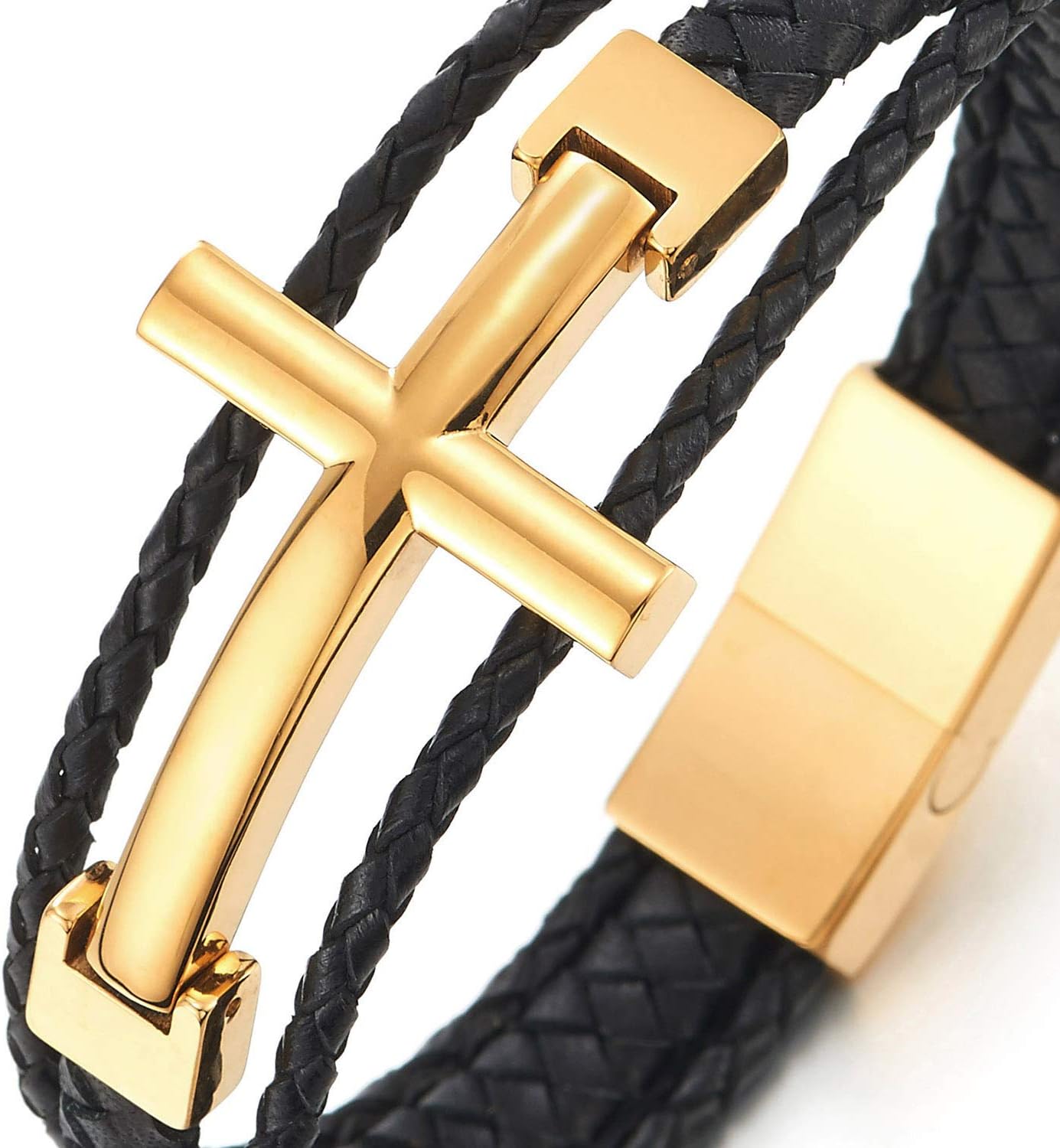 *Metal: Stainless Steel*Finishing: Polished *Metal Color: Silver; Leather Color: Black*Material: Black Leather*Dimension: length: 21.6CM(8.5")*Weight:32.5g *Metal Color: Gold; Leather Color: Black*Material: Black Leather*Dimension: length: 21.5CM(8.46")*Weight:33.1g *Metal Color: Silver; Leather Color: Brown*Material: Brown Leather*Dimension: length: 21.5CM(8.46")*Weight:32.6g *Metal Color: Silver & Black; Leather Color: Black*Material: Black Leather*Dimension: length: 21CM(8.27"); width:1CM(0.39")*Weight:40.7g *Metal Color: Gold; Leather Color: Brown*Material: Brown Leather*Dimension: Length: 22CM(8.66")*Weight:33.5g *Metal Color: Black; Leather Color: Brown*Material: Brown Leather*Dimension: Length: 22CM(8.66")*Weight:33.4g *Metal Color: Silver-01; Leather Color: Black*Material: Black Leather*Dimension: Length: 22CM(8.66"); Width: 0.8CM(0.31")*Weight:24.9g