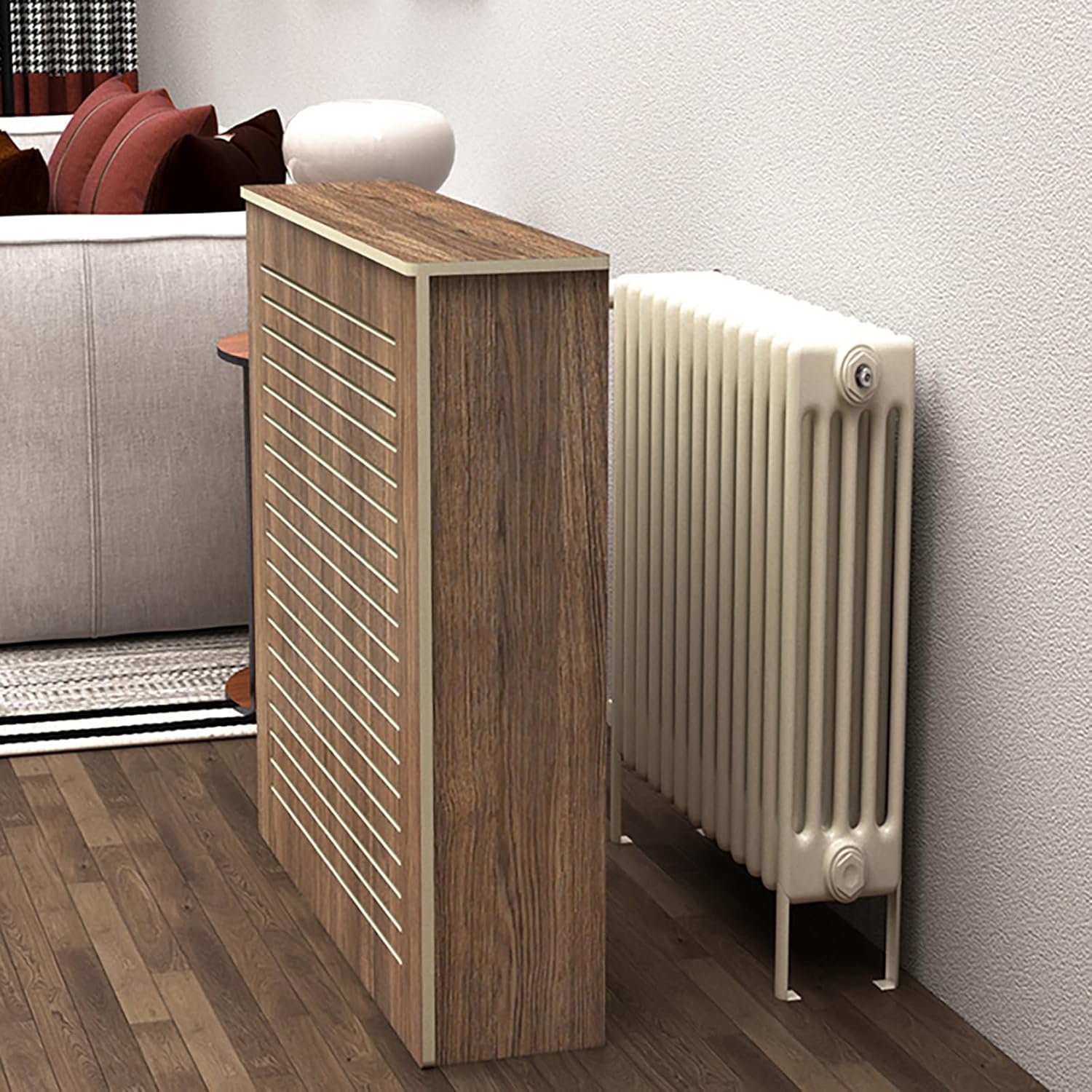 Our carefully crafted radiator cover combines load-bearing, display, protection, easy installation and multi-functionality, making it an indispensable choice for modern homes.【Product Parameters】Product Name: Radiator CoverMaterial: Artificial BoardStyle: ModernSurface Treatment: PVCAssembly Required: YesColor: BrownSize: 70*70*20cm/27.5*27.5*8in, 70*80*20cm/27.5*31.5*8in, 80*70*20cm/31.5*27.5*8in, 80*80*20cm/31.5*31.5*8in, 80*90*20cm/31.5*35. 4*8in, 90*90*20cm/35.4*35.4*8in, 90*100*20cm/35.4*39.4*8in, 100*80*20cm/39.4*31.5*8in, 100*90*20cm/39.4*35.4*8in, 100*100*20cm/39.4*39.4*8in【Product Features】#The unique PVC wood-plastic board structure gives the radiator cover an unimaginable load-bearing performance.#The carefully designed top shelf area can be used to place your favorite books, selected photo frames and various decorations.#This radiator cover effectively isolates high temperatures, and its optimized heat dissipation channel makes air circulation more efficient.#No complex tools are required, and the quick and easy assembly process allows you to easily get started.#Suitable for various scenes such as kitchen, living room, bedroom, etc., and its unique multifunctional design shows extraordinary practical value and aesthetic charm.【Packing List】1*Radiator Cover