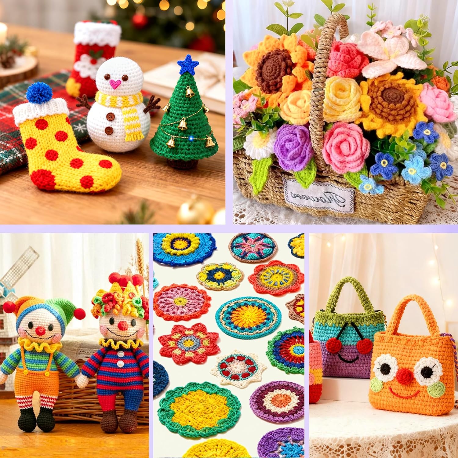 | Included Components | 35 skeins of mixed-color acrylic yarn, 8 ergonomic soft-handled crochet hooks (2.0-6.0mm), 8 lace crochet hooks (0.6-1.9 mm), 10 markers, 3 plastic sewing needles, 3 U-shaped plastic needles, 3 plastic threading needles, 3 binding needles, 2 pom-pom makers, 2 needle gauges, 1 pair of scissors, 1 measuring tape, 1 yarn winder, 1 purple zip-lock storage bag |