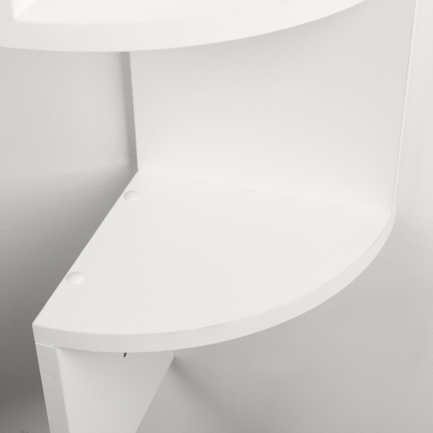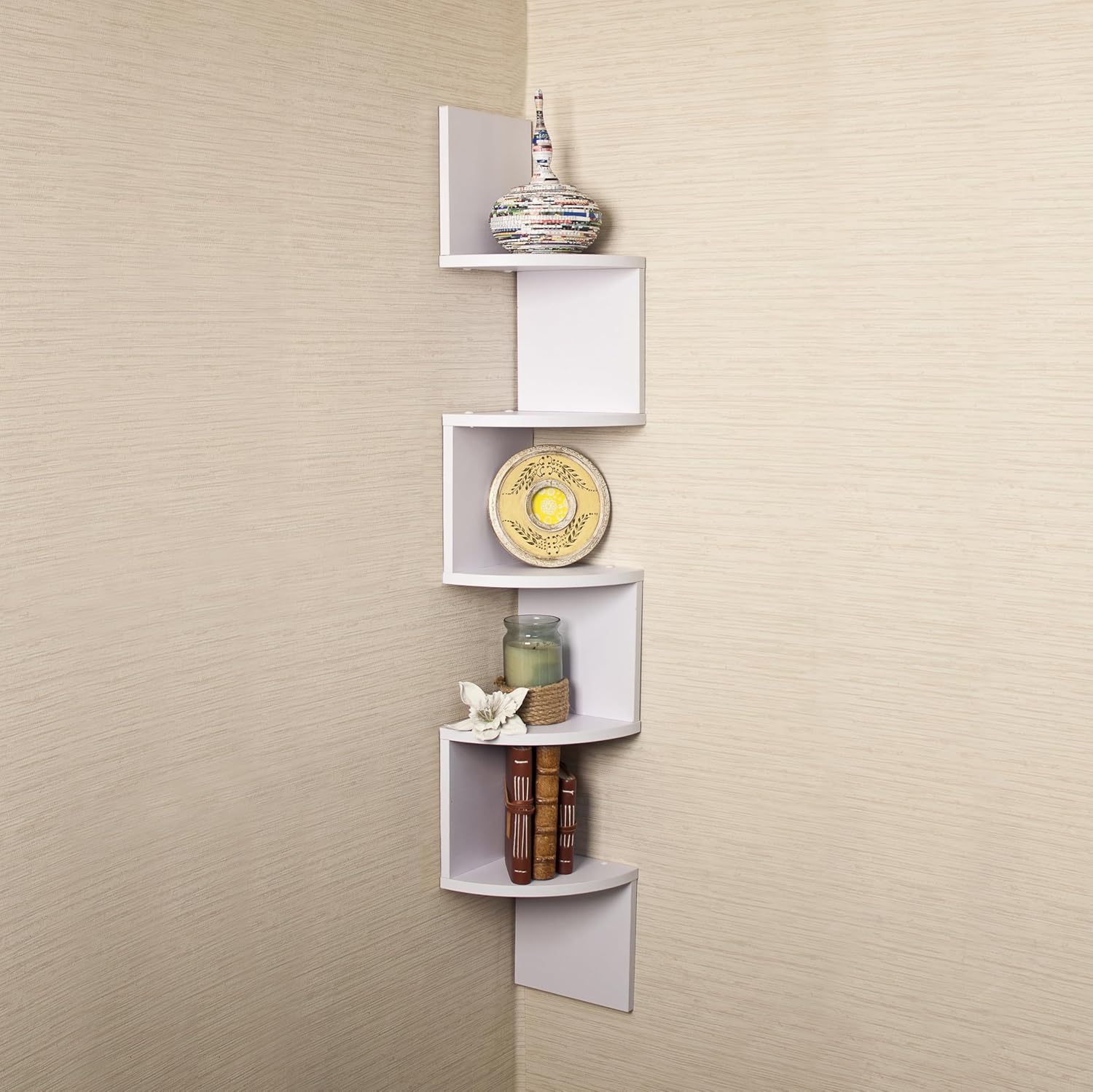 Decorative corner wall shelves makes space utilization possible from any corner. Creative design and space saving solution for small areas. Display collectibles, photos, toys, awards, CD's, videos, decorative items and more. Attaches to both sides of the wall with only 2 nails or screws. MDF & laminate. With its contemporary white finish, they are the ideal accent for any living space. Minor assembly is required.