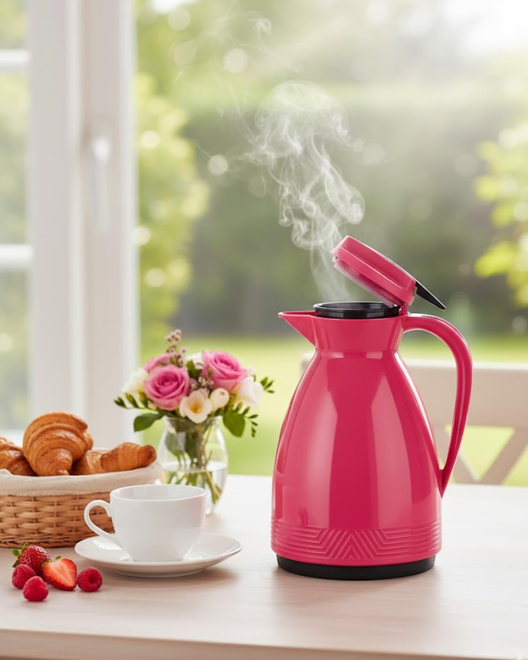 Elevate your beverage experience with the Airobazar Double Wall Glass Termos, a sophisticated 1-liter travel flask that combines style and functionality. The sleek pink exterior complements its robust stainless steel construction, making it a perfect companion for your daily adventures. The double-wall design helps maintain your drink's temperature, whether hot or cold, while the heat-resistant properties ensure safe handling. Complete with a convenient screw-on cup, this carafe is thoughtfully designed for easy pouring and sipping on the go. The 1-liter capacity is ideal for keeping your favorite beverages at hand throughout the day. To maintain its pristine condition, hand washing is recommended. This versatile termos is perfect for office use, outdoor activities, or simply enjoying your preferred drinks at home in style.
