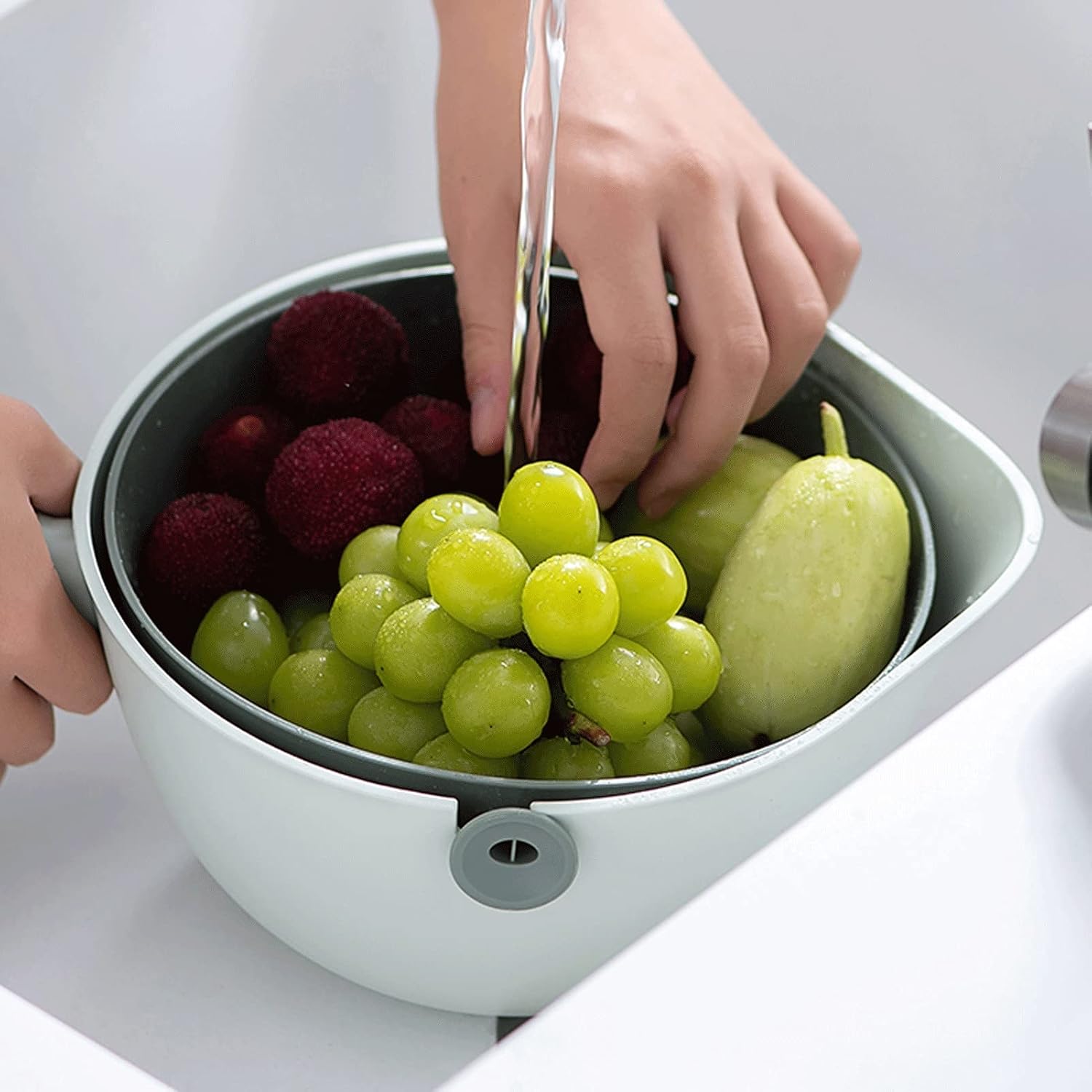Product name: Two-color fruit and vegetable drain basketProduct material: plasticOccasion: Very suitable for washing or storing fruits, vegetables, pasta, etc.Package contents: 1 * 2 in 1 drain basket with handle rotating.Note: Before using for the first time, please clean it with a neutral detergent. Keep away from fire sources to avoid product deformation. Avoid using hot water for disinfection. The water temperature is recommended to be below 80°C.Tips:1. Please note that due to the influence of light and screen, slight chromatic aberration is acceptable. Thank you!2. Please confirm the size and color before buying3. Product photos do not include products other than products4. Please allow 2-3% difference according to manual measurement, please refer to the actual product, thank you!5. Welcome to share and feedback, we can provide you with better products and services.6. If the product has any quality problems, please feel free to contact us via email, we will solve the problem for you as soon as possible.It makes the countertop storage more convenient and neat, and keeps your dishes away from water drops, it is your perfect kitchen utensils。