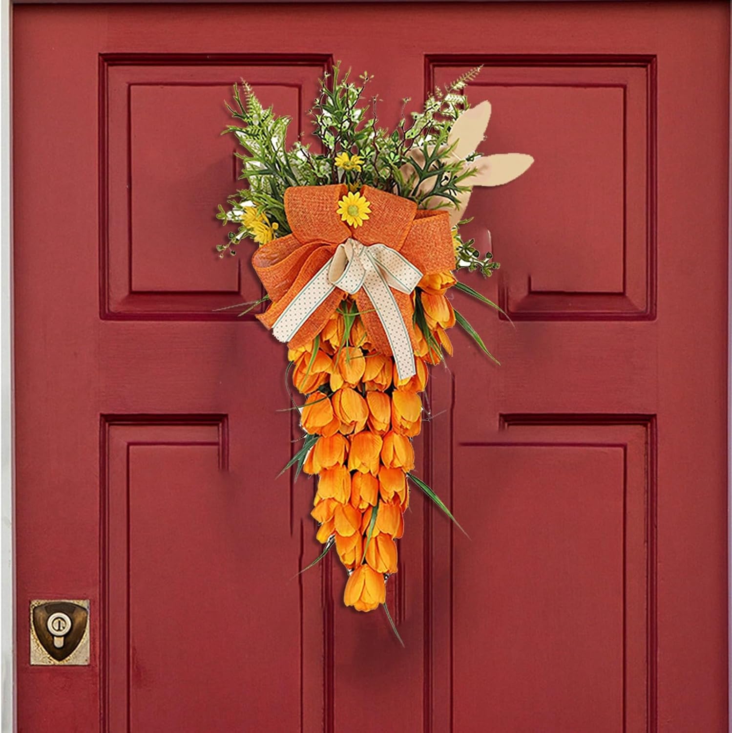 Easter Carrot Wreath,Easter Door Decoration Decorated with Carrots,Tulip Spring Easter Wreath for Front Door,Carrot Shape Wall Hanging Home Decor (C)