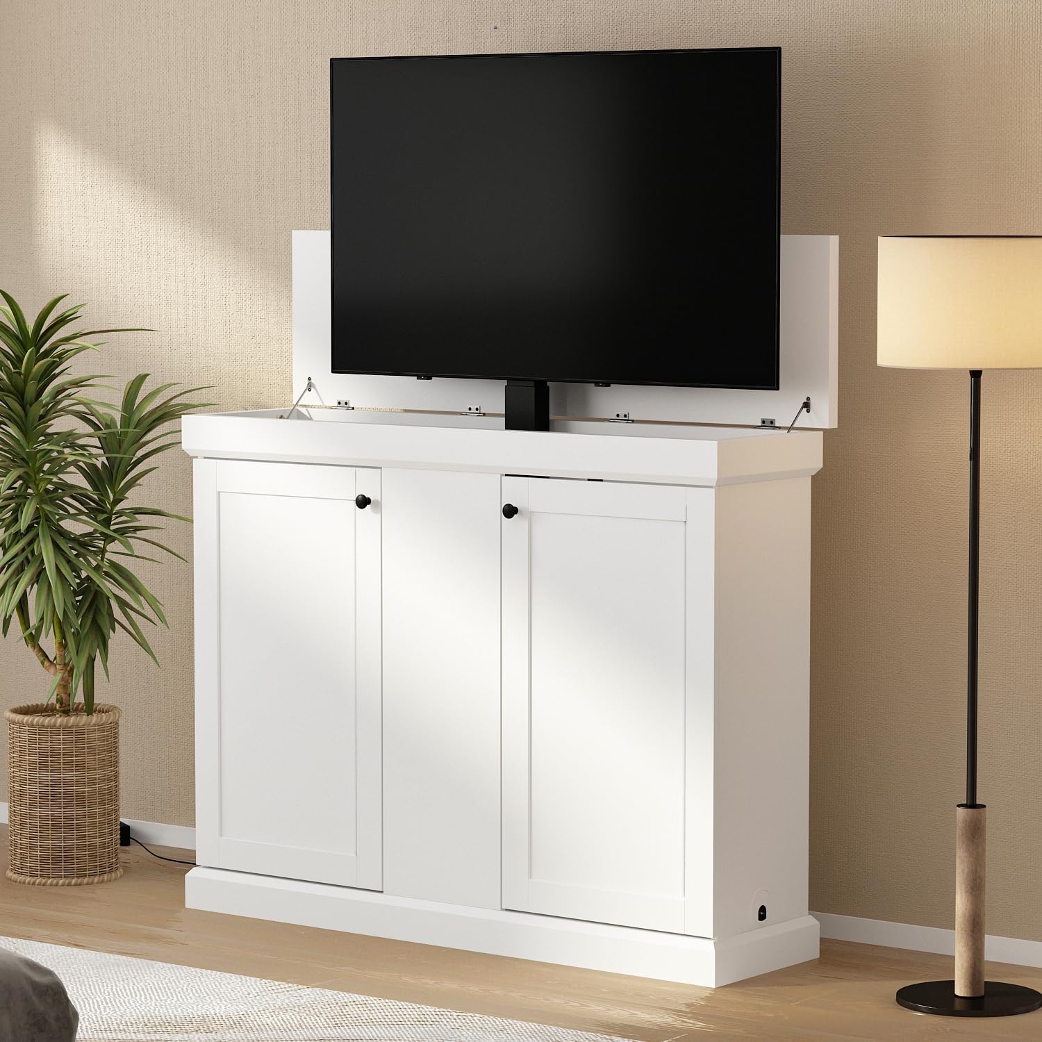 • Versatile Motorized TV Stand - ECACAD lift TV stand cabinet comes with rising and lowering motor system, fits TVs up to 55 Inches. Overall dimensions of the TV cabinet: 50.4"W x 13.8"D x 39.3"H. It works well not only as TV stand, but also buffet sideboard storage cabinet, makeup vanity table, entryway cabinet and so on.