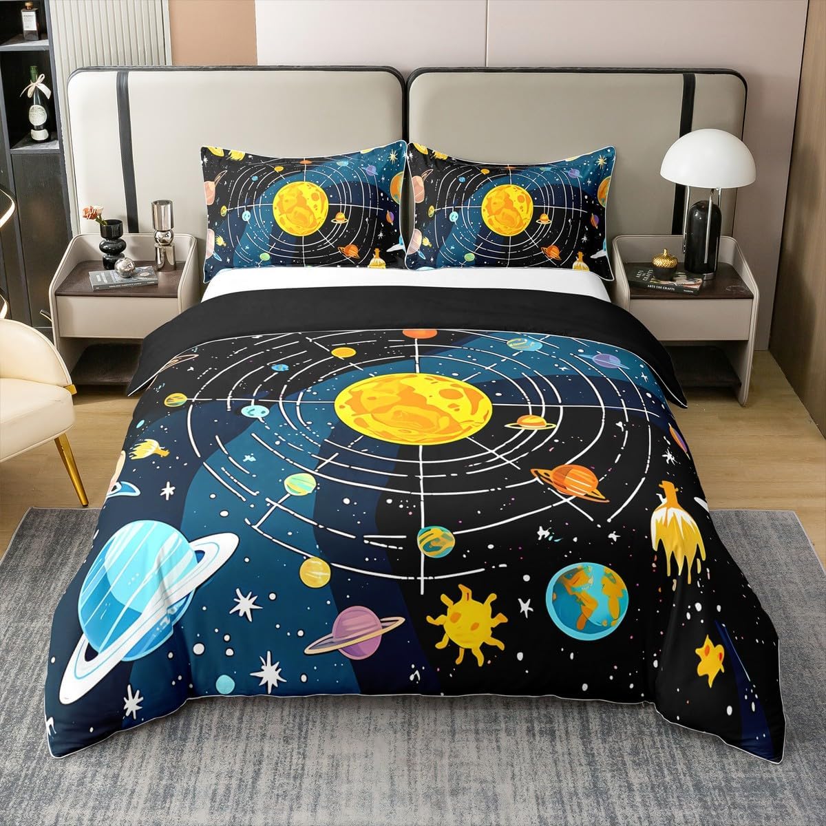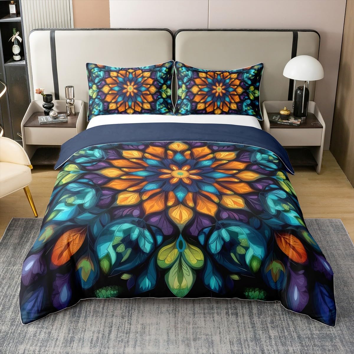 Cotton Duvet Cover Set with Printed Patterns Size Information Twin size:2pcs duvet cover set,1 Duvet Cover 68 x 90 inch,173 x 228cm, 1 pillow sham 20 x 30 inch,51x75cm.Without Comforter Full size:3pcs duvet cover set, 1 Duvet Cover 79 x 90 inch,200 x 229cm, 2 pillow shams 20 x 30 inch,51 x 75cm.Without Comforter Queen size:3pcs duvet cover set, 1 Duvet Cover 90 x 90 inch,229 x 229cm, 2 pillow shams 20 x 30 inch,51 x 75cm.Without Comforter King size :3pcs duvet cover set, 1 Duvet Cover 104 x 90 inch,264 x 229cm, 2 pillow shams 20 x 36 inch,51 x 92cm.Without Comforter Product Features: Decorative bedding ensemble with multiple pattern options Machine washable in cold water (separate cycle recommended) Line dry method suggested; bleach-free cleaning required All-season cotton construction suitable for various age groups Key Specifications: Primary material: 100% cotton Design application: Printed patterns Age compatibility: Kids, teens, and adults