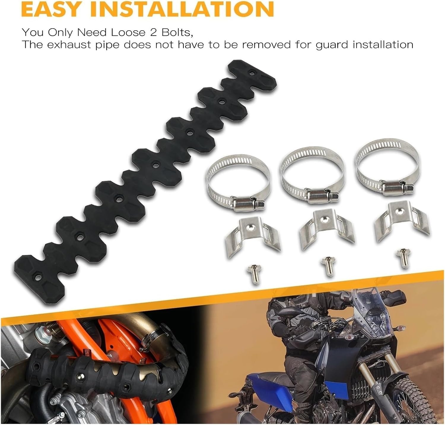 Function: Motorcycle exhaust pipe protective cover heat insulation cover, improve exhaust efficiency and optimize engine performance,has a beautiful appearance and keeps you cool.Exhaust Heat Shield Muffler Protector For Suzuki RMZ250 RMZ400 RMZ450 RMX250 RMX400 RMX450 DRZ250 DRZ400 DRZ450Material: aluminum and siliconeprovide protection from small impacts and rocks.Noise & Vibration ReductionThe use of elastomer reduces vibrations and noise which delivers youpleasant riding experienceHeat ResistantResistant to head pipe temperature and not easy to be burnt.Easy InstallationThe exhaust pipe does not have to be removed for guard installation.Length: 400mm/220mmColor: Red/Black/Orange/PurplePackage Includes:1x Exhaust Head Pipe Guard1x Mounting KitFor Ho&nda CRF250 CRF450 CRFX250 CRFX450For Ya&maha YZF250 YZF450 YFZ250 YFZ450 WRF250 WRF450For Suzuki RMZ250 RMZ400 RMZ450 RMX250 RMX400 RMX450 DRZ250 DRZ400 DRZ450Stability: Motorcycle Exhaust Pipe Collision Protection Improves motorcycle performance and makes it more reliable on all terrains,also a beautiful decoration for the exhaust pipe.