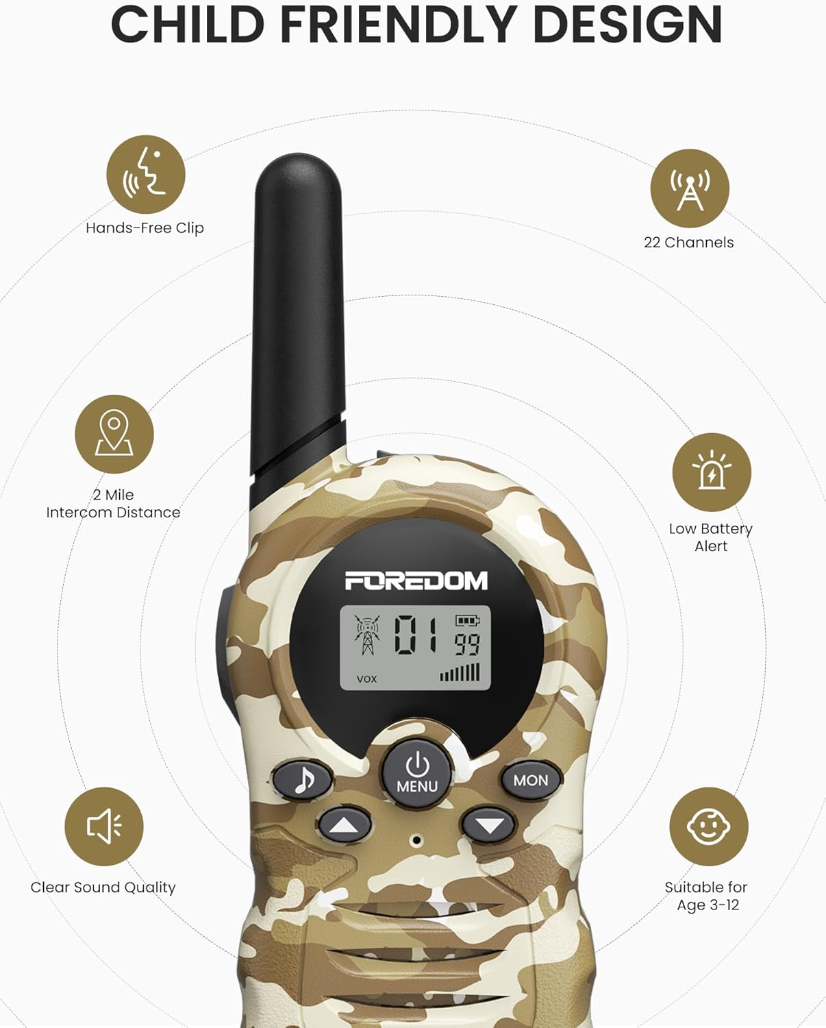 | Additional Features | 2 Milie Long Range, Handsfree Communication |