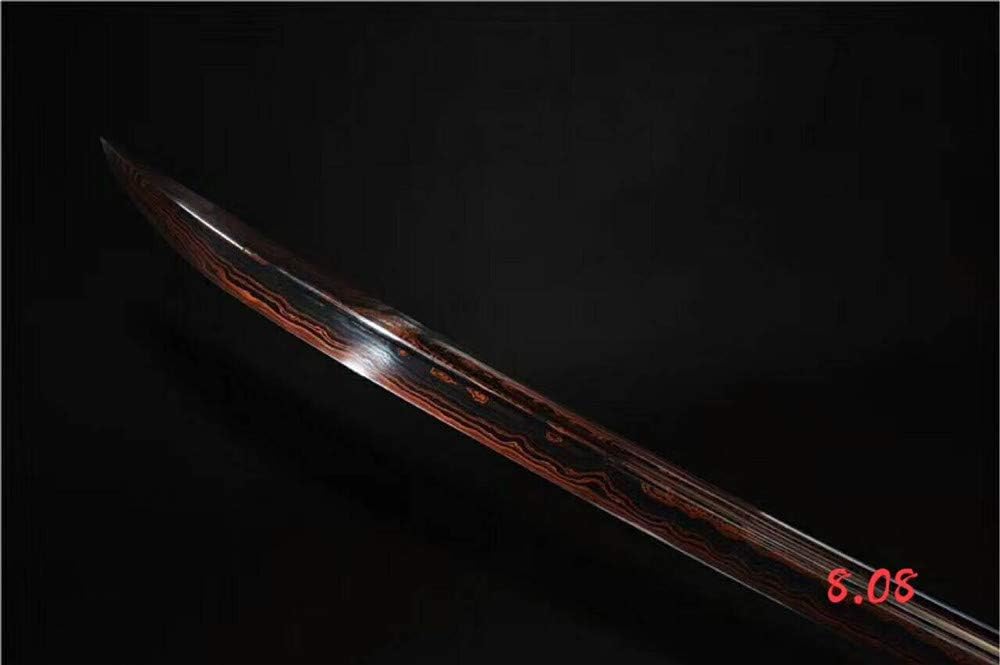 About Sword Craftsmanship: This sword is a sturdy and beautiful sword. It has a strong sharp blade and a beautiful functional handle. It is made by experienced sword smiths using traditional methods of making swords by hand, more than 10 production processes include: material selection, forging, hardening, quenching, polishing, grinding, sharpening and final assembly, all finished manually About Sword Performance:This sword is battle ready real sharp blade, good hardness and elasticity, easily meeting actual combat requirements, can cut trees, fruit, water bottles, chop bamboo, tatami mats, slice paper scope of application: It can be used as a collection for exhibitions or as a gift for family, friends. It can also be used for sword cutting training, self defense or cosplay Instructions for use:Please take care to keep it away from water and do not leave it in camp and direct sunlight to prevent rusting This word is very sharp, please do not point it at people or animals Keep out of reach of children This product is suitable for children under adulthood. points for attention: Sword size:- overall: 92.8 cm / 37 inch, blade: 67.5 cm / 27 inch, handle: 19.25 cm / 7.7 inch Tsuka handle:-humanized design, easy to grip and comfortable to use, hard wood core, red genuine rayskin Samegawa, zinc alloy kashira & fuchi, gold dragon menuki, black synthetic silk tsukamaki (Hineri maki), fixed by 2 mekugi (wood peg) Sword saya:it made high wood saya. sword tsuba:alloy Packaging includes: a sheath sword, a bag, no display stand