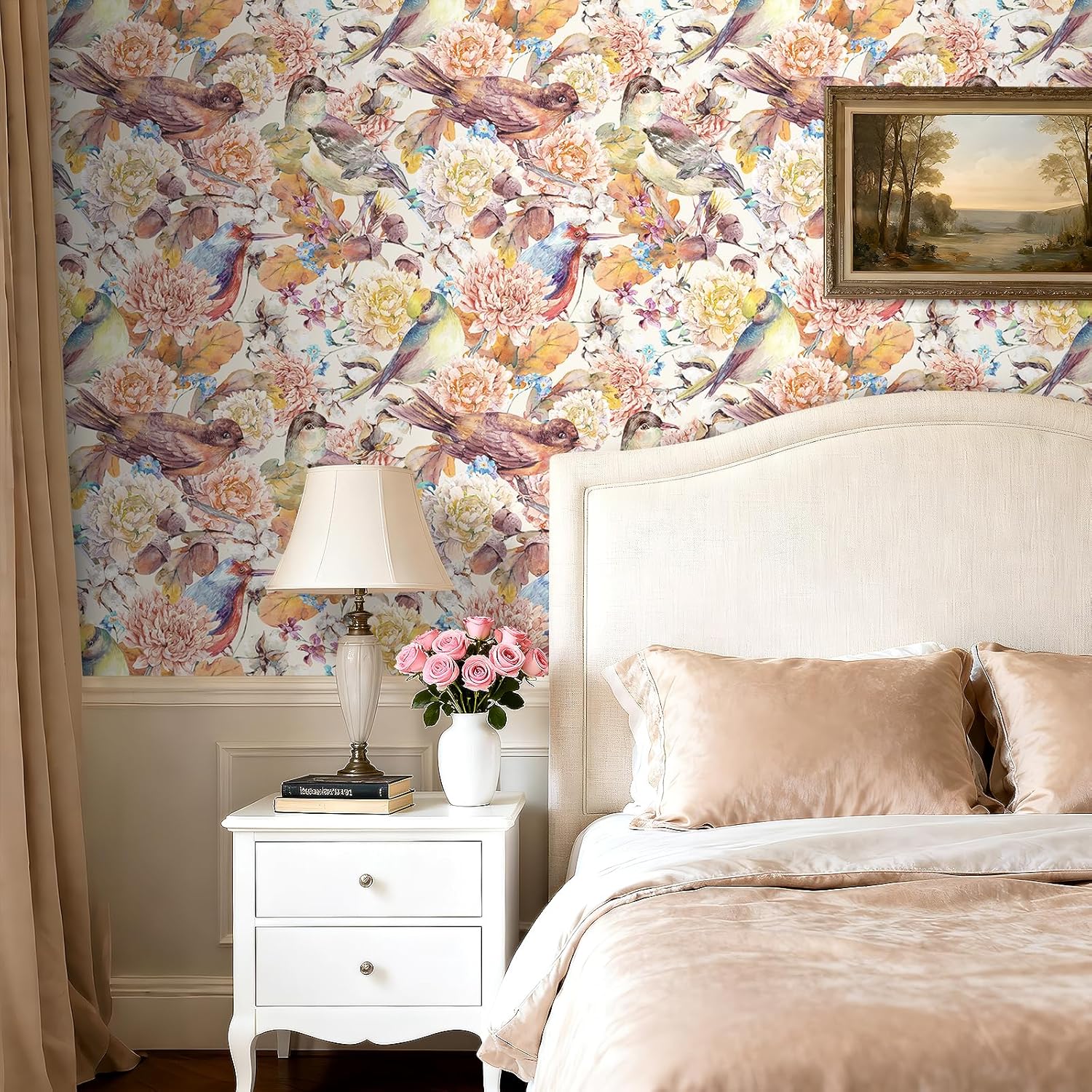 | Theme | Chinoiserie Yellow Orange Pink Wallpaper Peel and Stick Bird Floral Contact Paper Pink Orange Yellow for Walls Cabinets Shelves Kitchen Cabinet Wallpaper Waterproof |