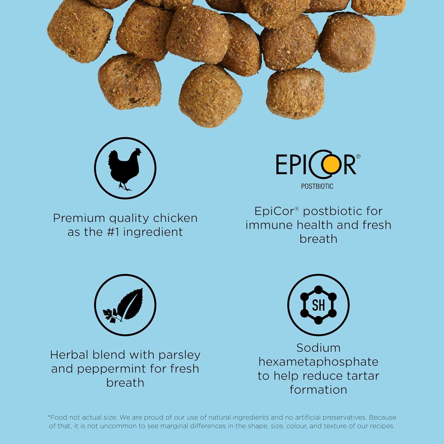 | Additional Features | EpiCor postbiotic for immune health and fresh breath, dental herb blend, large kibble for tooth brushing effect, backed by science with proven dental health benefits |