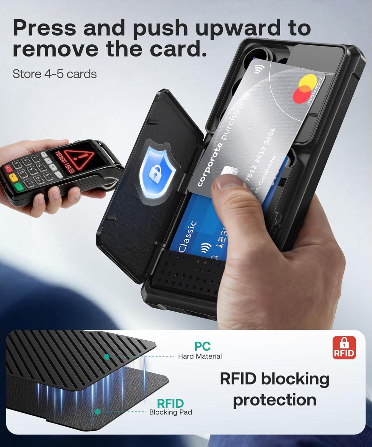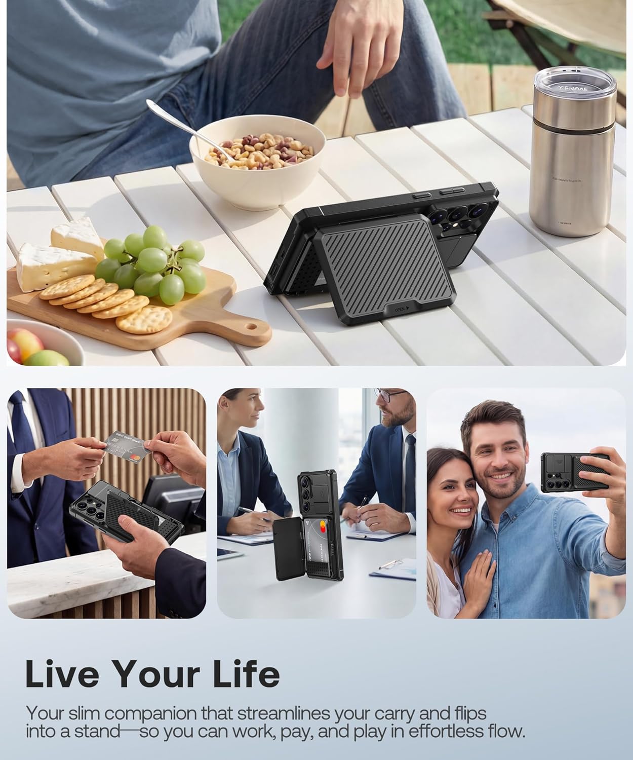 | Additional Features | Card Slot, Kickstand, RFID Blocking Protection, Shock-Absorbent, Sliding Lens Cover |