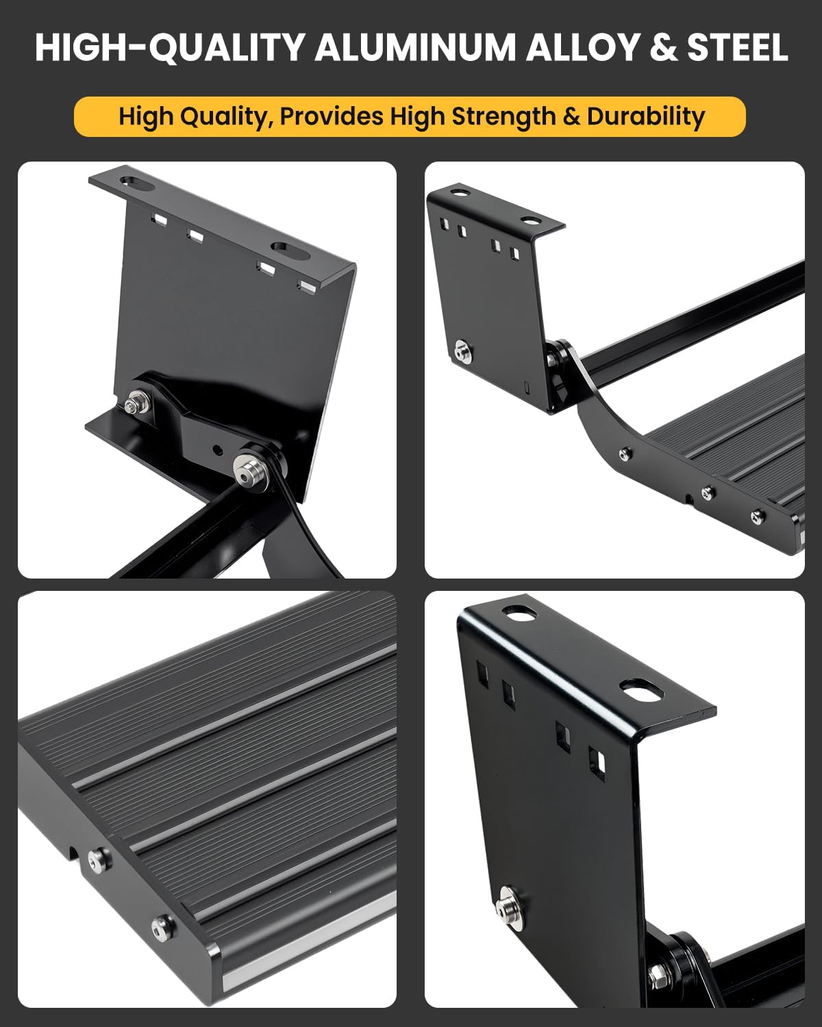 Heavy-Duty Retractable Camper Steps, 5mm Steel & Aluminum Alloy, 600LB Load, Non-Slip Pedals with Locking Switch, Easy Fold for RV Trailer Door