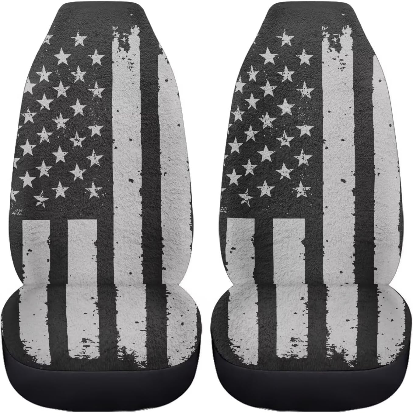 INSTANTARTS American Flag Front Seat Cushion Fluffy Car Seat Covers 2pcs Universal Vehicle Bucket Seat Cover Auto Interior Accessories