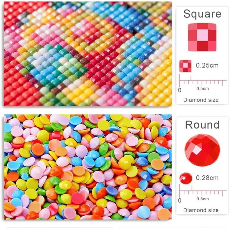 "Specifications: Material: Canvas + Diamonds + Glue Color: as shown in the pictures Style: 5D Diamond Painting Quantity: 1 set Size: Canvas Size ""Method of use: 1: After opening the product, you need to use the tools according to the diamond arranged in the color 2: When you start, you just need to peel off a small part of the paper to avoid other sticky dust areas which may affect the vivid effect after you finish painting 3: Paste the diamond into the corresponding mesh (according to the serial number). 4: After the paste of the diamond is about to be completed, you need to use the article or the book to press the diamond, so that the diamond can be solid. If you like this production, we also support any kind of diamond painting photo customization. With your family to complete your favorite photo, it would be very interesting."