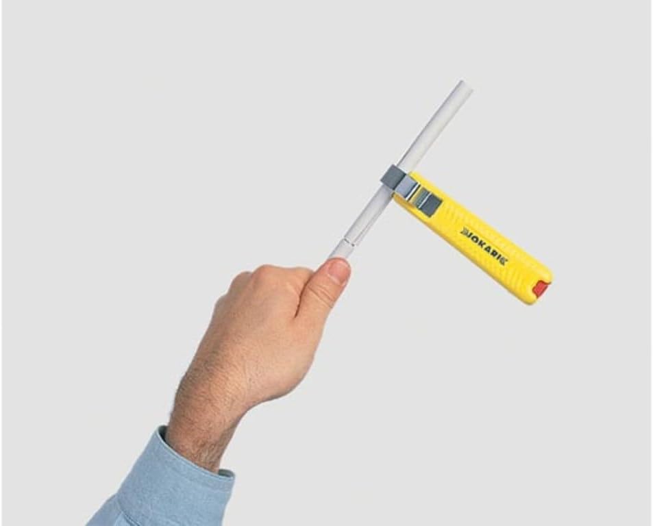 This tool is a quality Product made in Germany by JOKARI. The JOKARI-Krampe GMBH is a leading producer of cable stripping and de-insulating technology. JOKARI produce since more than 40 years specialist tools for a wide range of applications that allow simple, fast, and precise cable stripping. Proven a million times over, the JOKARI cable knife is the tool of choice for stripping all standard round cables. Each JOKARI cable knife benefits from special Titanium-Nitride coating (TIN) to achieve longer life, faster cutting, and less wear. A practical extra is the spare blade with TIN coating included in the handle. The Standard No. 27 is a cable knife for stripping most common round cables from 5/16" - 1.1/8" (8 - 28 mm) Ø .