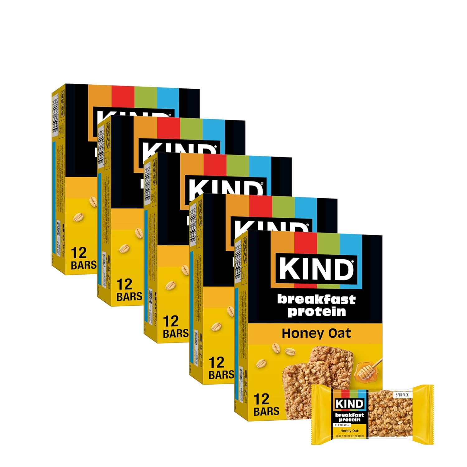 KIND Breakfast bars are a wholesome snack made with 100% whole grains for sustained energy. KIND breakfast bars are made with five super grains, oats, buckwheat, millet, amaranth and quinoa - for a chewy, soft baked addition to your breakfast. These KIND bars come individually wrapped and are perfect for convenient, on-the-go, gluten free snacks. Each two-bar pack has at least one full serving of whole grains. KIND Honey Oat Breakfast bars help provide sustained energy from whole grains* (28g per serving). Made with quality, wholesome ingredients, these gluten free breakfast bars contain 28 grams of whole grains per serving and 0 grams of trans fat. These delicious snacks are Non-GMO Project Verified. Healthy snacks are smarter snacks. Snack KIND!
