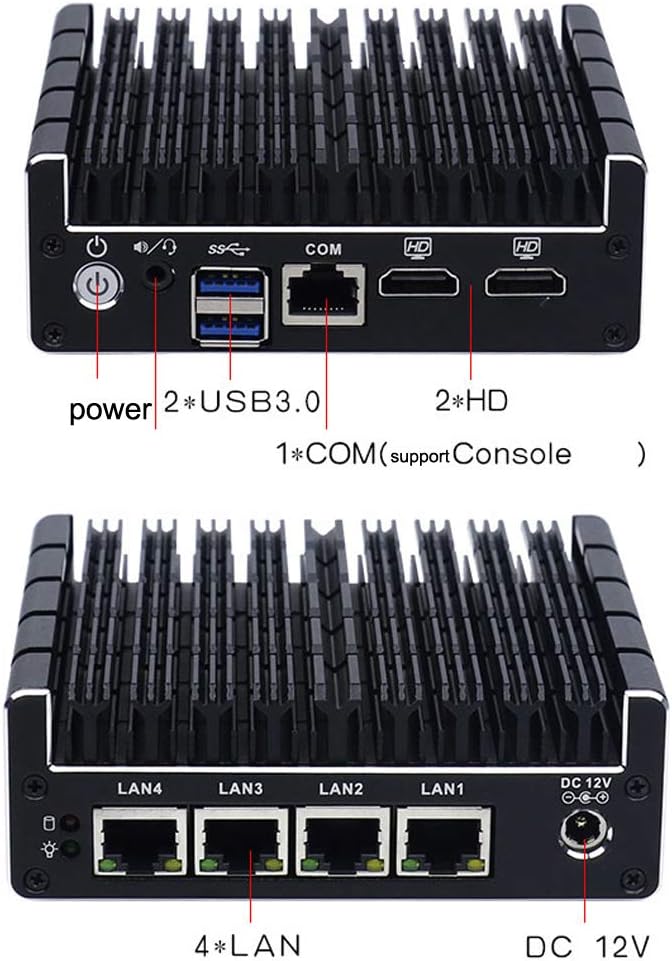 | Additional Features | 4×LAN, 1×COM, 2×HD, 2×USB3.0, Celeron CPU, HD Graphics, dual monitor support via 2*HD, all metal case |