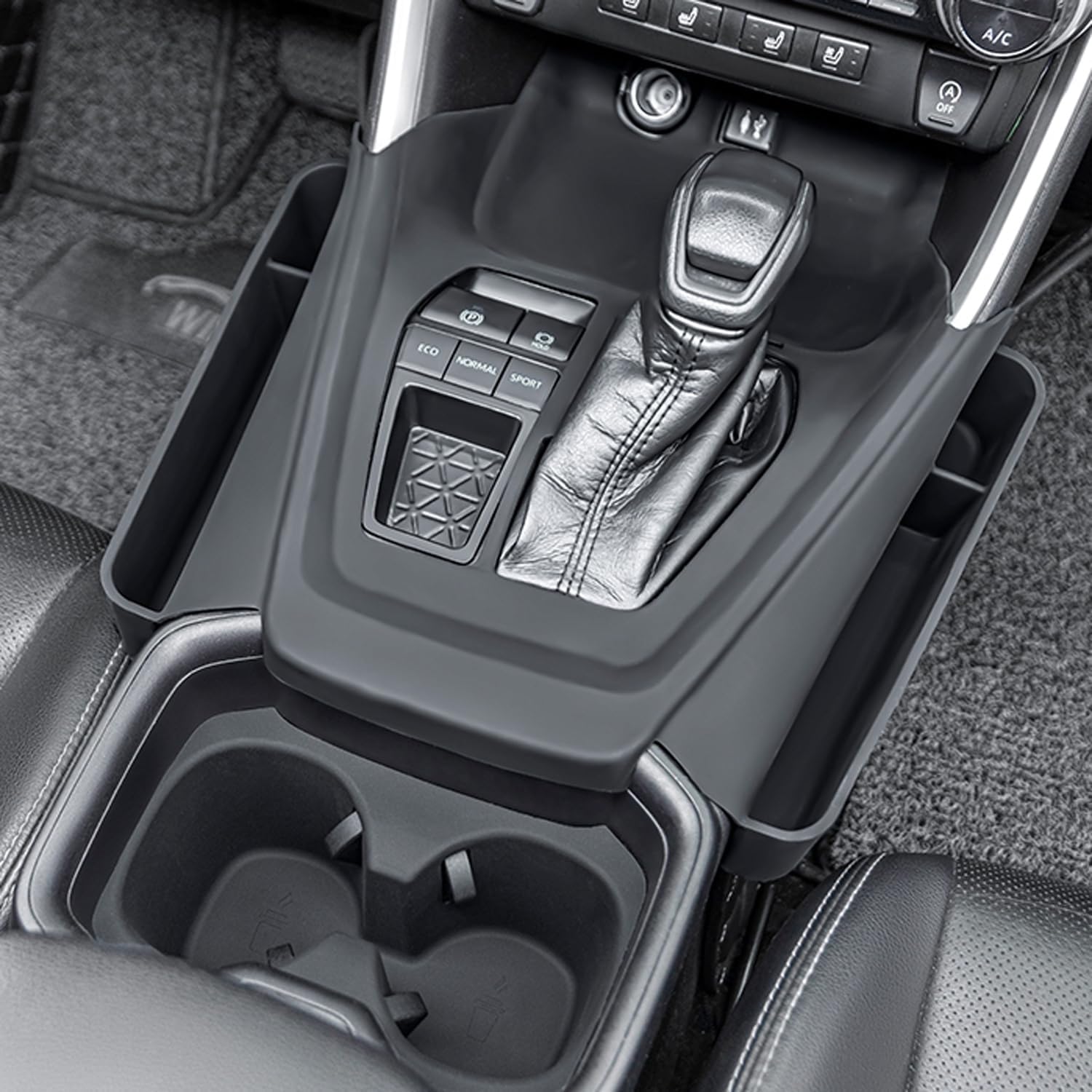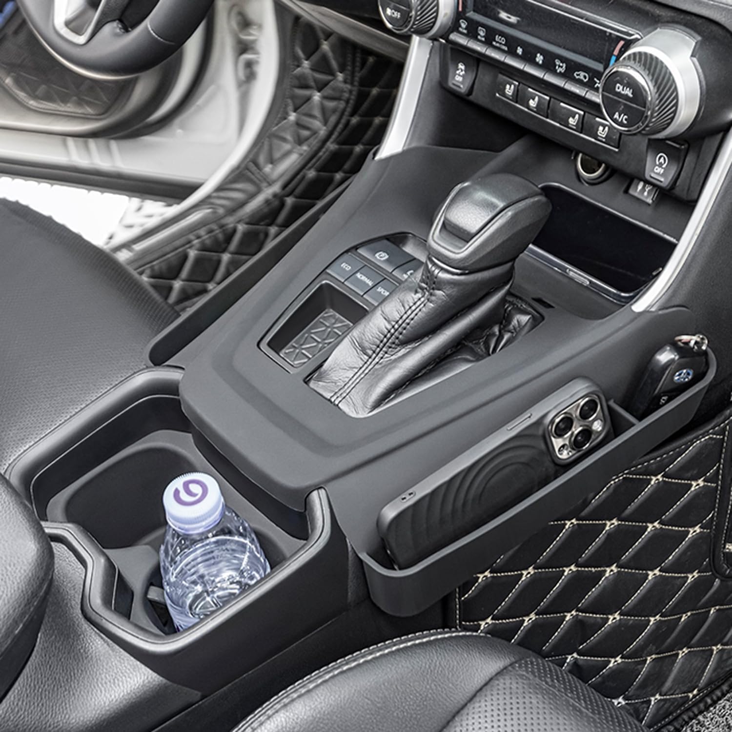Enhance for Toyota RAV4's interior with this sleek center console gear shift cover. Designed specifically for 2019-2025 RAV4 models, this black silicone overlay adds a refined touch to your vehicle's cabin while protecting the gear shift area from daily wear and tear. The precision-cut trim fits seamlessly over your existing console, providing both style and functionality. Made from durable silicone material, this accessory maintains its appearance over time and offers a smooth, premium feel. Installation is straightforward, allowing you to upgrade your RAV4's interior aesthetics with minimal effort. The black finish complements your vehicle's existing interior design while adding a subtle modern accent to the center console area. This practical addition helps preserve your gear shift surroundings while elevating the overall look of your RAV4's cabin.