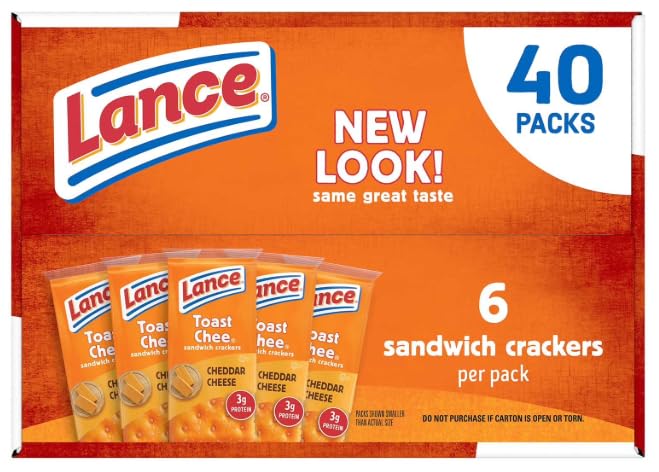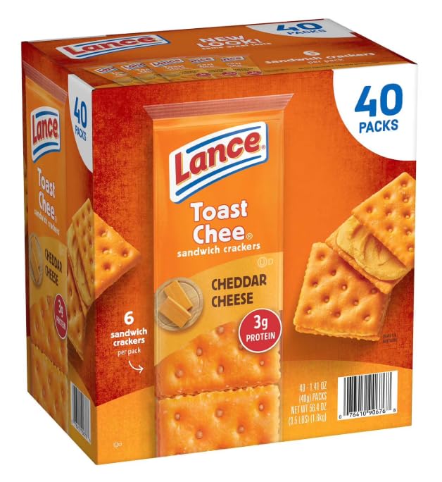 40 single-serve sandwich cracker packs, 6 crackers per pack Cheese crackers with real cheddar cheese filling 3 grams of protein per serving Convenient packaging Great for school lunches