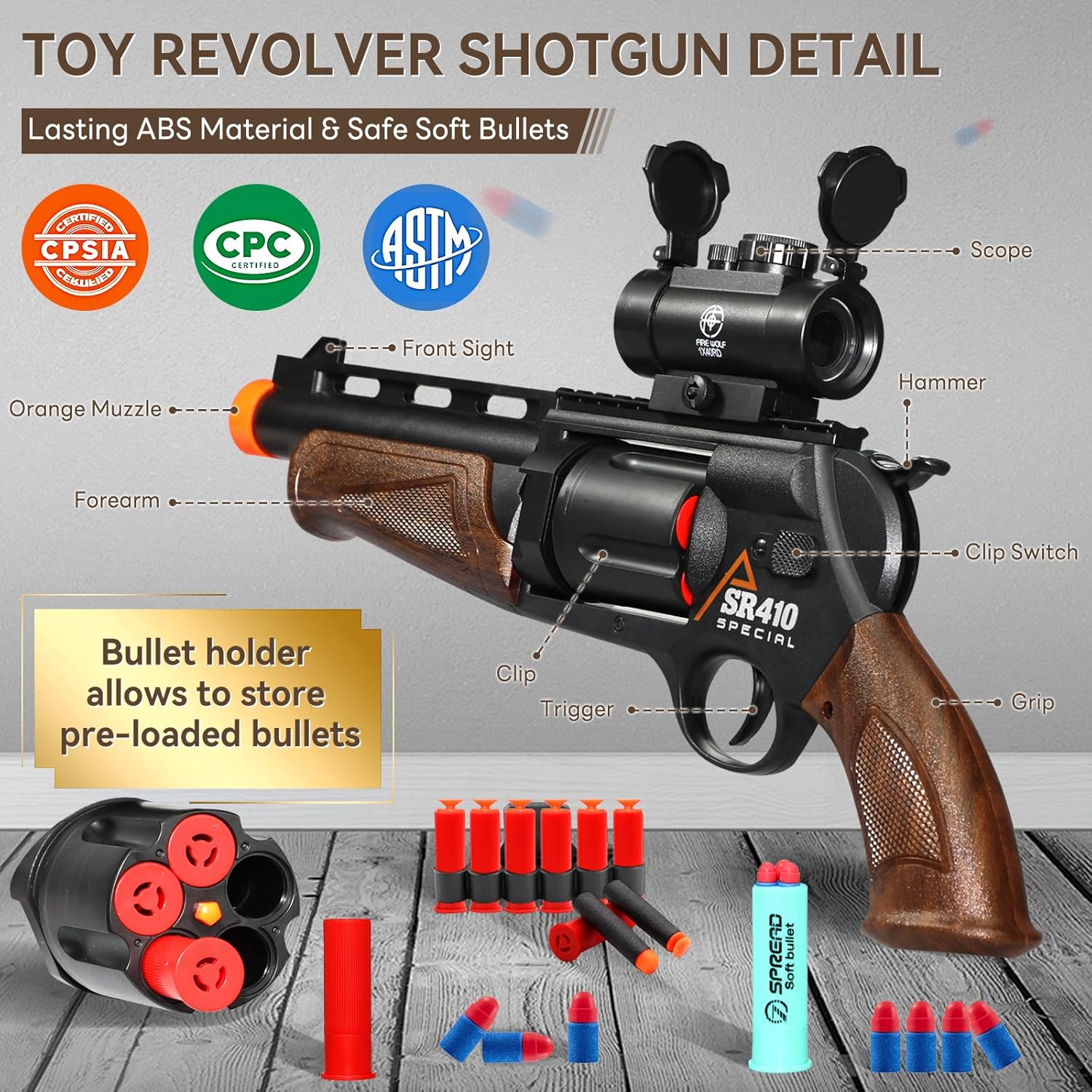 | Special Features | Outdoor Shooting Game Toys, Pretend Gun for Halloween Prop, Revolver Toy Gun, Soft Bullet Toy Gun |