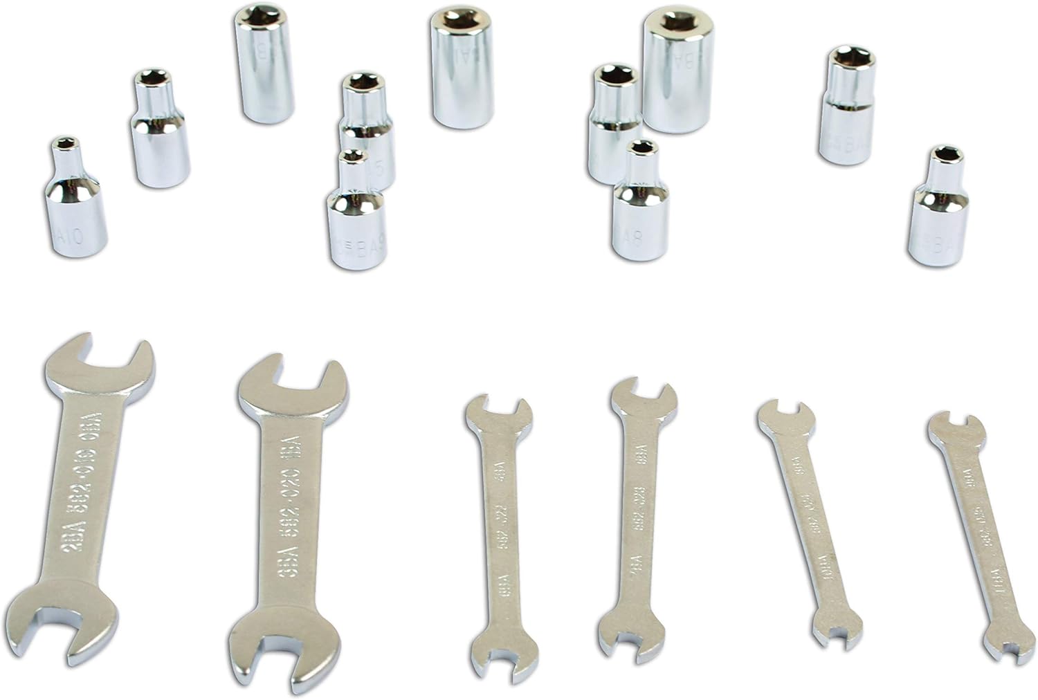 A British tool company based in Warwickshire, United Kingdom. Laser Tools draws on years of experience to introduce quality products which offer real value for money. All our products are responsibly sourced both from trusted ethical partners across the world PLUS (uniquely as an automotive tool brand) our own manufacturing base in the UK. Combining our British manufacturing, our years of experience and vast expertise in the automotive sector helps us achieve our aim of bringing high quality tool solutions first to market and being No.1 choice for many professional mechanics. A set of BA sockets and spanners covering sizes from 0BA to 11 BA.