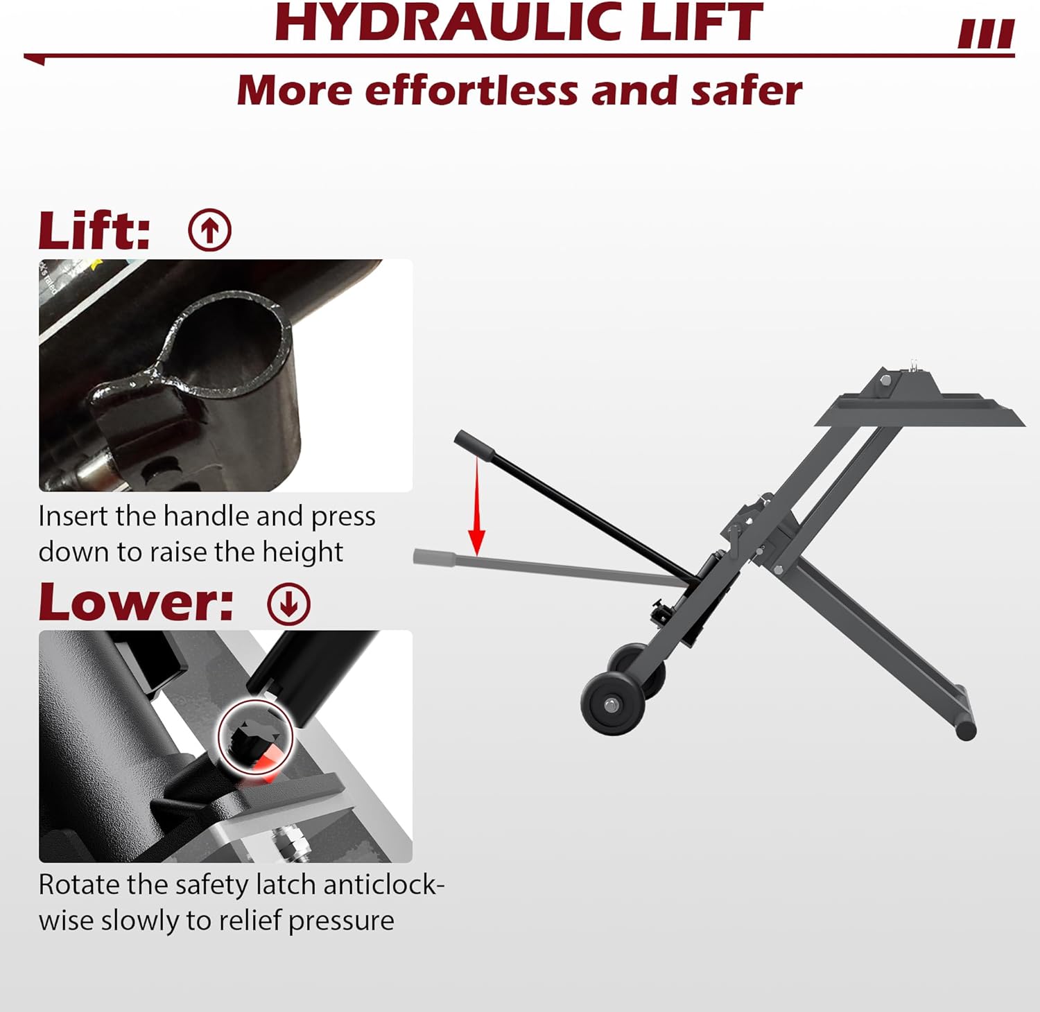 Description: This kind of hydraulic lawn mower lift can quickly lift the riding mower or ATV for daily maintenance or repair. the lawn mower lift can easily lift up 500 pounds of lawn mower. Adjustable track width and lifting height make it suitable for most size of mowers and help you with different maintenance needs. It provides large space for you to perform necessary maintenance, such as blade engineering, cleaning debris, oil change and more. Equipped with cradles and brake pullers, it is safe when you use it. It's light and compact, and when it's done, you can fold it up for easy storage.