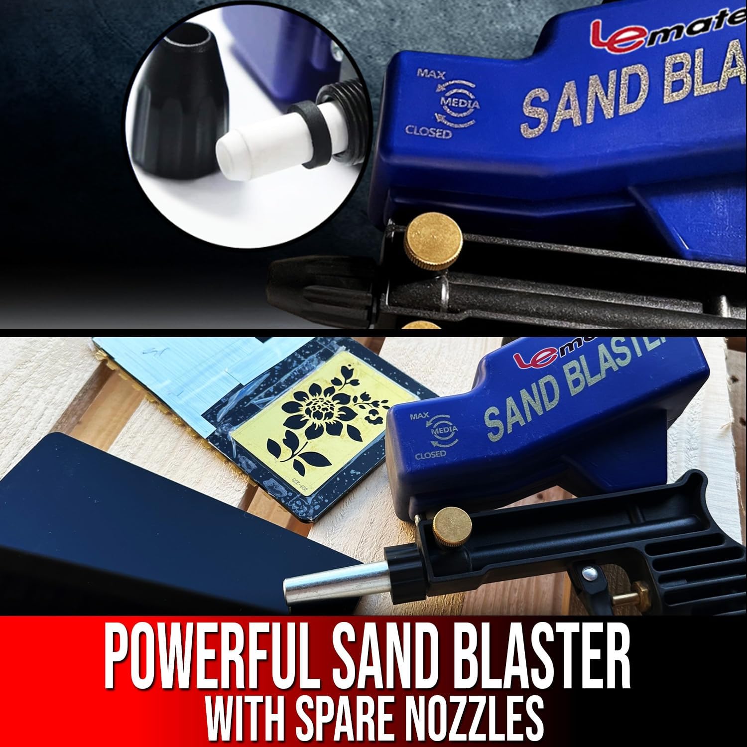 Versatile Sand Blaster and Replacement Nozzle Kit for rust removal, paint stripping, and professional-grade surface prep. Compatible with soda, aluminum oxide, sand, and walnut shells.
